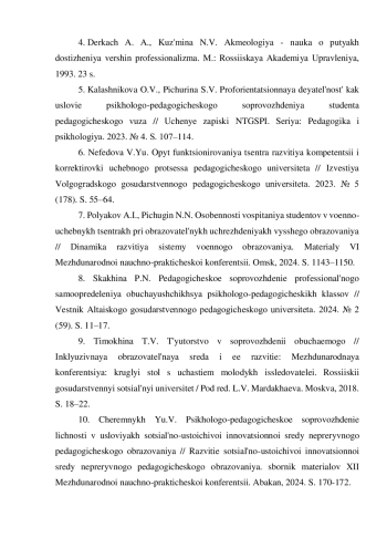 4. Деркач А. А., Кузьмина Н.В. Акмеология - наука о путях достижения вершин профессионализма. М.: Российская Академия Управления, 1993. 23 с.