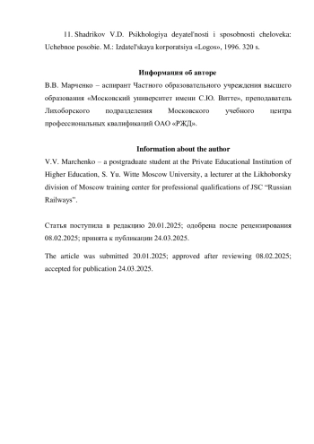 11. Шадриков В.Д. Психология деятельности и способности человека: Учебное пособие. М.: Издательская корпорация “Логос”, 1996. 320 с. EDN: SIXGOF