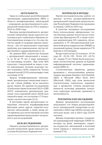 Статья: Распространённость артериальной гипертонии в Республике Таджикистан (2025)
