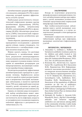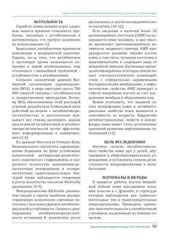 Статья: Оценка чувствительности к антибиотикам микроорганизмов, выделенных с кожи школьников (2025)