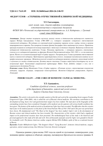 ГАНТАМИРОВ Т.Т. ФЕДОР УГЛОВ - "СТЕРЖЕНЬ ОТЕЧЕСТВЕННОЙ КЛИНИЧЕСКОЙ МЕДИЦИНЫ" // ВЕСТНИК МЕДИЦИНСКОГО ИНСТИТУТА. 2024. № 2 (26)