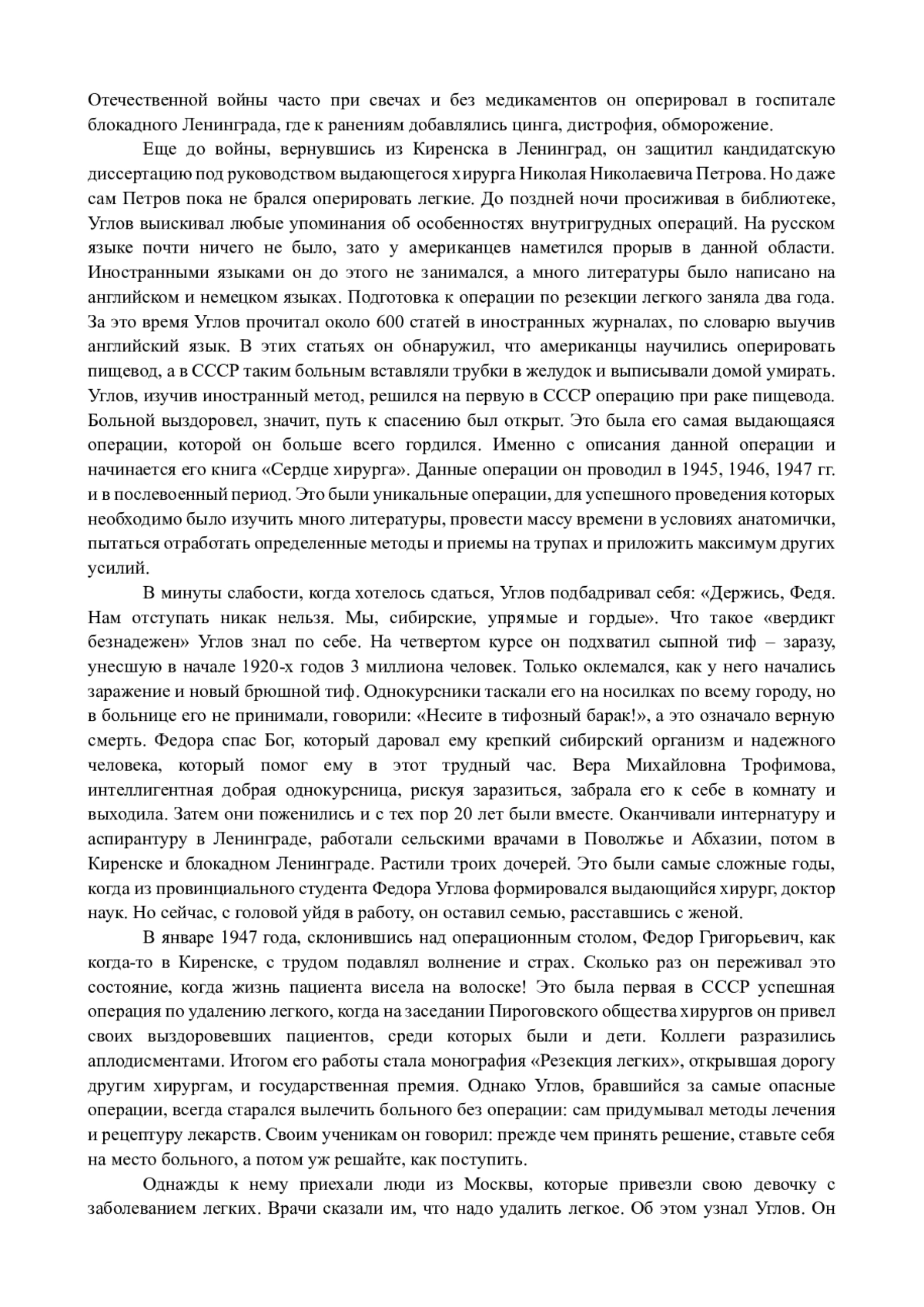 Ключевые фразы: федор михайлович углов, «сердце хирурга», «резекция легких», отечественная клиническая медицина, хирургия, ОПЕРАЦИИ, митральная комиссоротомия, восточно-сибирский университет, киренск, ЛЕНИНГРАД