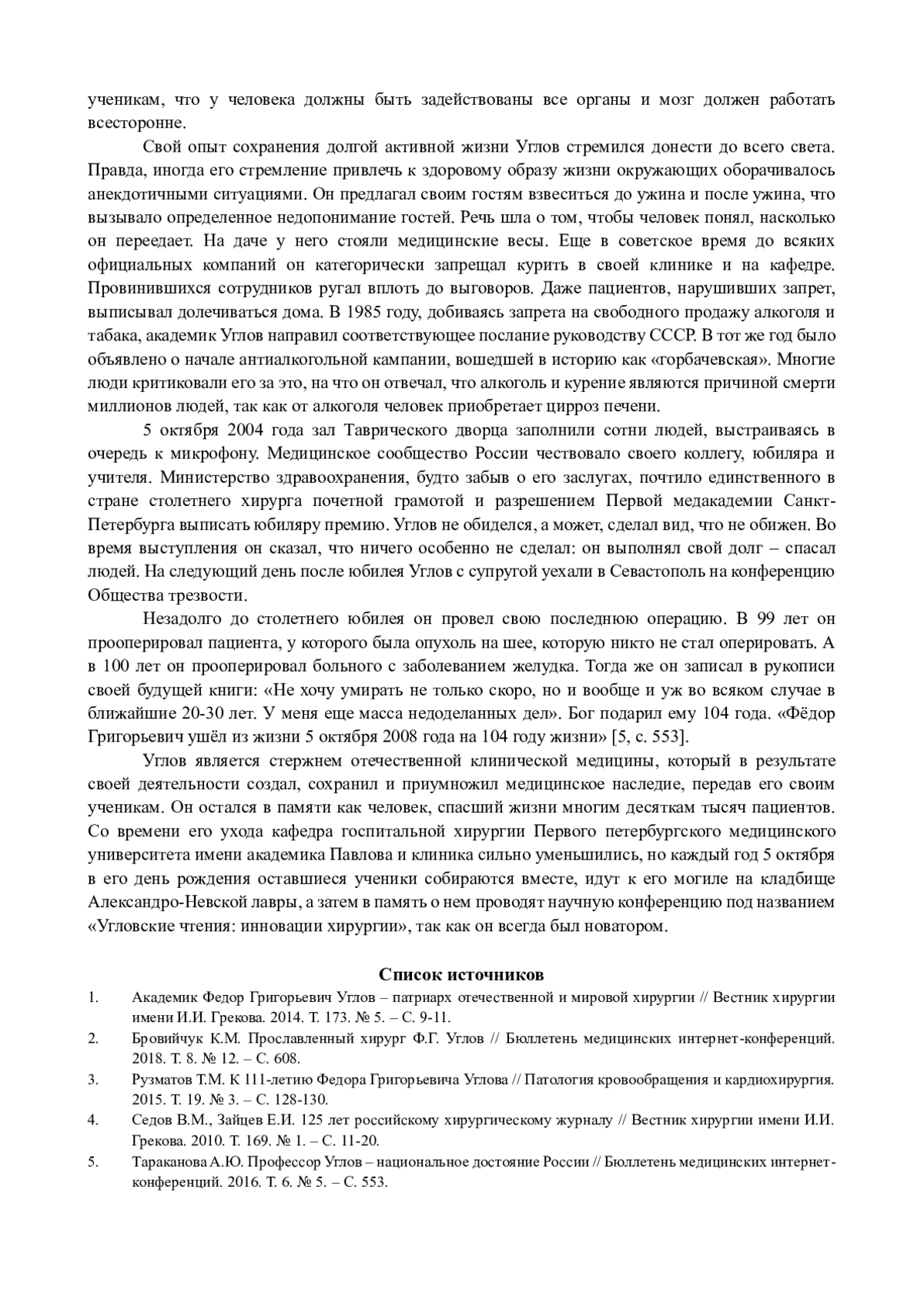 Статья: ФЕДОР УГЛОВ - "СТЕРЖЕНЬ ОТЕЧЕСТВЕННОЙ КЛИНИЧЕСКОЙ МЕДИЦИНЫ" (2024)