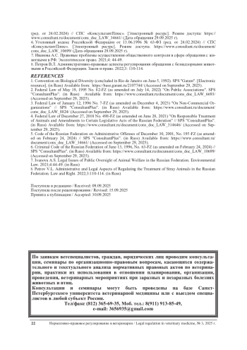 Журнал: НОРМАТИВНО-ПРАВОВОЕ РЕГУЛИРОВАНИЕ В ВЕТЕРИНАРИИ