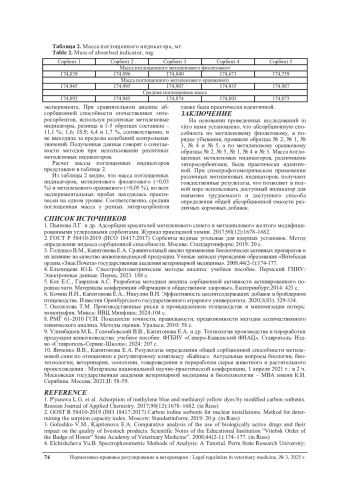 1. Пьянова Л.Г. и др. Адсорбция красителей метиленового синего и метианилового желтого модифицированными углеродными сорбентами. Журнал прикладной химии. 2017;90(12):1678-1682.