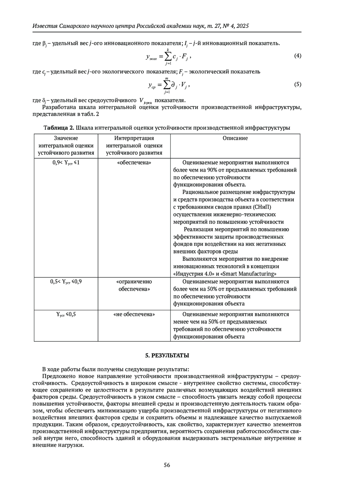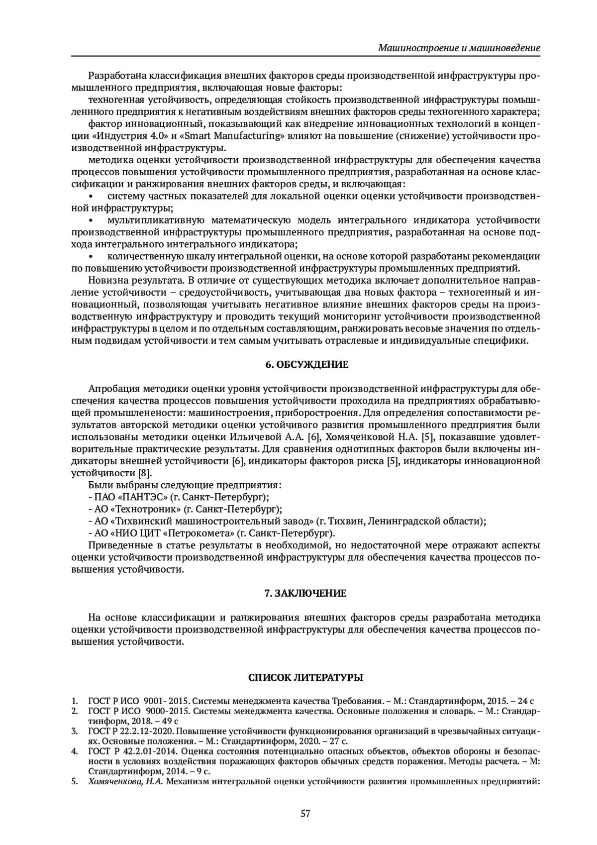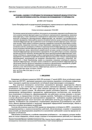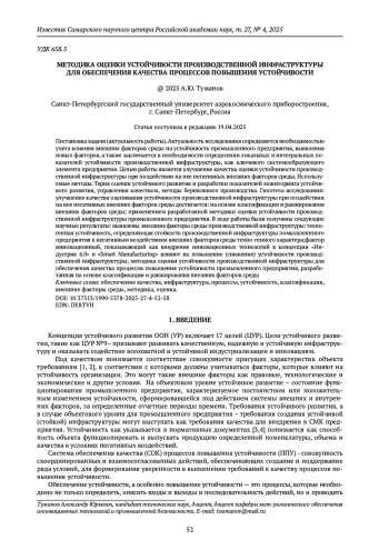 Статья: МЕТОДИКА ОЦЕНКИ УСТОЙЧИВОСТИ ПРОИЗВОДСТВЕННОЙ ИНФРАСТРУКТУРЫ ДЛЯ ОБЕСПЕЧЕНИЯ КАЧЕСТВА ПРОЦЕССОВ ПОВЫШЕНИЯ УСТОЙЧИВОСТИ (2025)