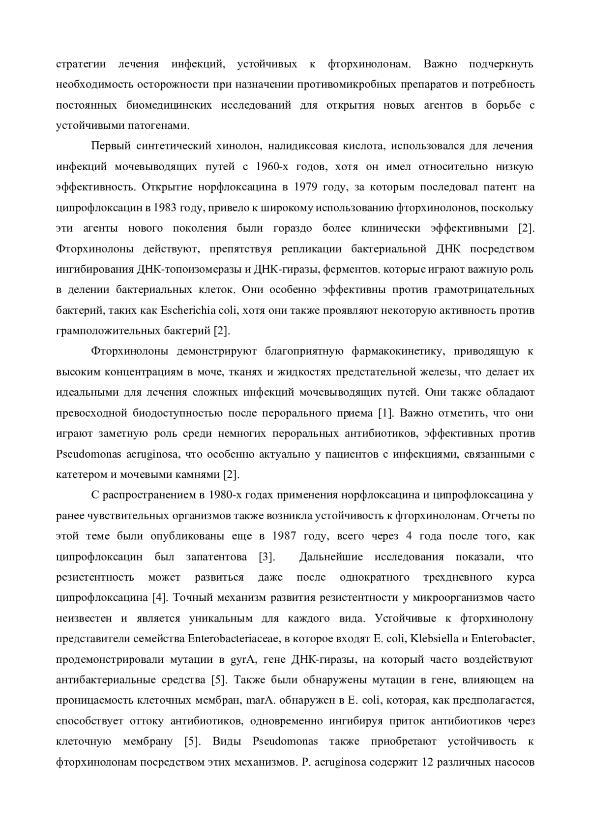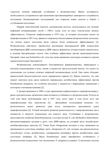 Первый синтетический хинолон, налидиксовая кислота, использовался для лечения инфекций мочевыводящих путей с 1960-х годов, хотя он имел относительно низкую эффективность. Открытие норфлоксацина в 1979 году, за которым последовал патент на ципрофлоксацин в 1983 году, привело к широкому использованию фторхинолонов, поскольку эти агенты нового поколения были гораздо более клинически эффективными [2]. Фторхинолоны действуют, препятствуя репликации бактериальной ДНК посредством ингибирования ДНК-топоизомеразы и ДНК-гиразы, ферментов. которые играют важную роль в делении бактериальных клеток. Они особенно эффективны против грамотрицательных бактерий, таких как Escherichia coli, хотя они также проявляют некоторую активность против грамположительных бактерий [2].