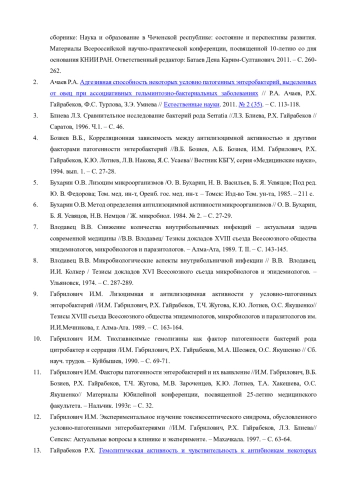 10. Габрилович И.М. Тиолзависимые гемолизины как фактор патогенности бактерий рода цитробактер и серрация /И.М. Габрилович, Р.Х. Гайрабеков, М.А. Шеожев, О.С. Якушенко // Сб. науч. трудов. - Куйбышев, 1990. - С. 69-71.
