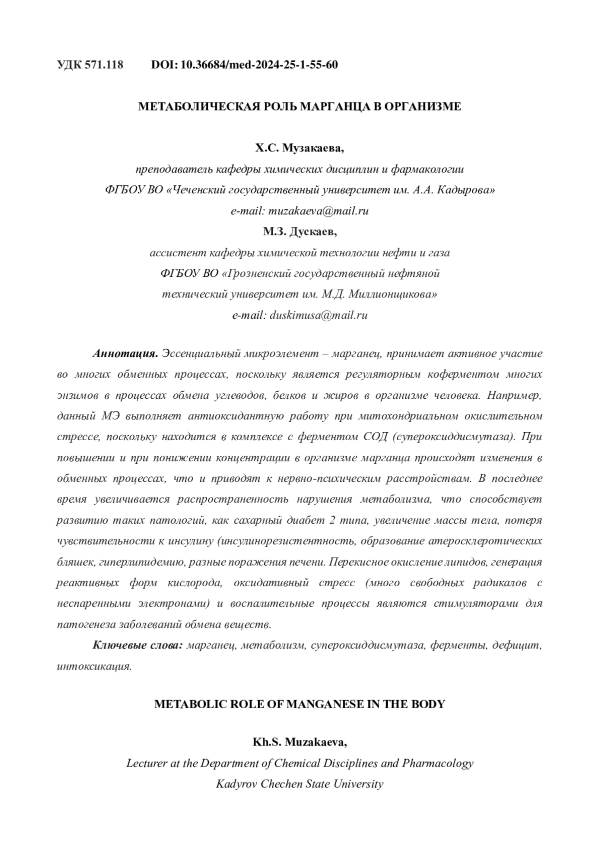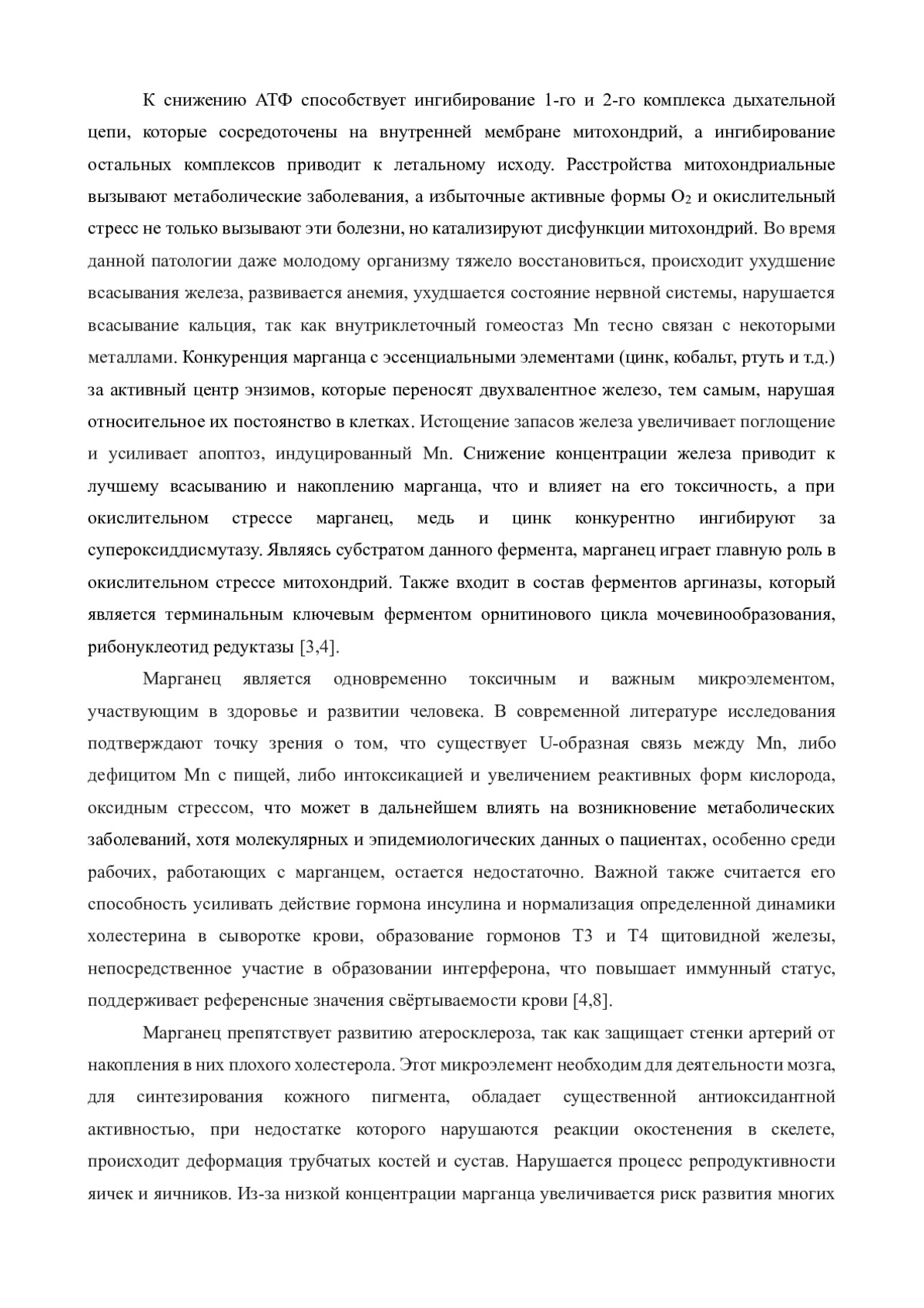Эссенциальный микроэлемент - марганец, принимает активное участие во многих обменных процессах, поскольку является регуляторным коферментом многих энзимов в процессах обмена углеводов, белков и жиров в организме человека. Например, данный МЭ выполняет антиоксидантную работу при митохондриальном окислительном стрессе, поскольку находится в комплексе с ферментом СОД (супероксиддисмутаза). При повышении и при понижении концентрации в организме марганца происходят изменения в обменных процессах, что и приводят к нервно-психическим расстройствам. В последнее время увеличивается распространенность нарушения метаболизма, что способствует развитию таких патологий, как сахарный диабет 2 типа, увеличение массы тела, потеря чувствительности к инсулину (инсулинорезистентность, образование атеросклеротических бляшек, гиперлипидемию, разные поражения печени. Перекисное окисление липидов, генерация реактивных форм кислорода, оксидативный стресс (много свободных радикалов с неспаренными электронами) и воспалительные процессы являются стимуляторами для патогенеза заболеваний обмена веществ.