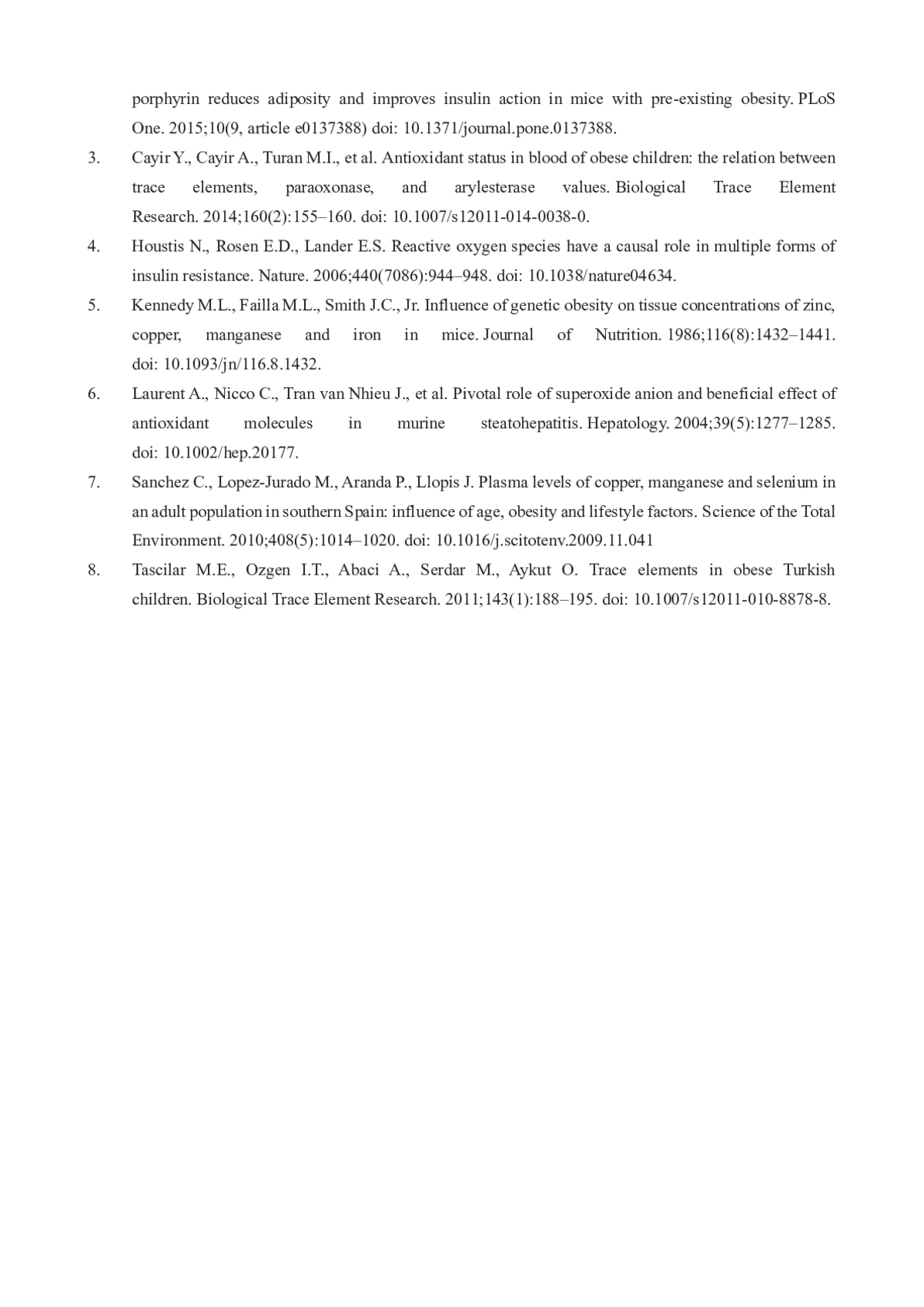7. Sanchez C., Lopez-Jurado M., Aranda P., Llopis J. Plasma levels of copper, manganese and selenium in an adult population in southern Spain: influence of age, obesity and lifestyle factors. Science of the Total Environment. 2010;408(5):1014-1020. DOI: 10.1016/j.scitotenv.2009.11.041