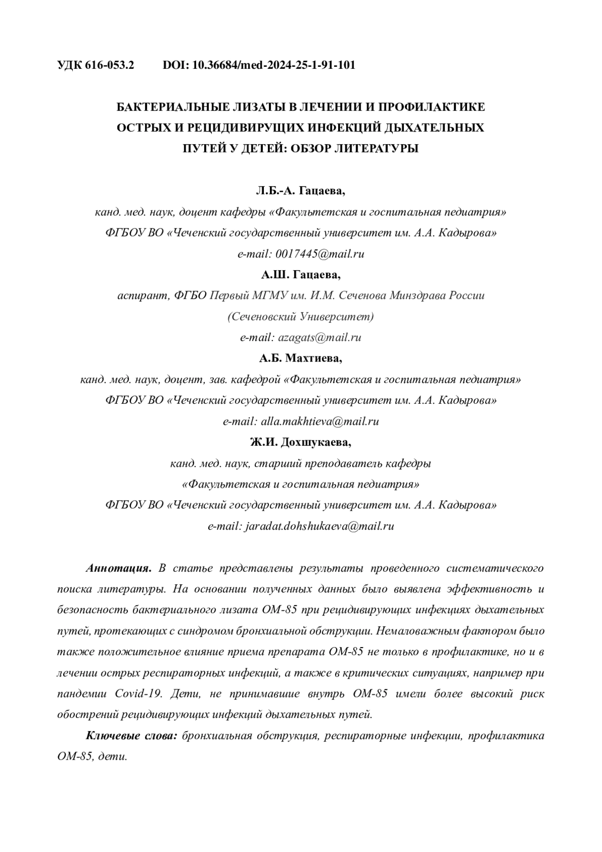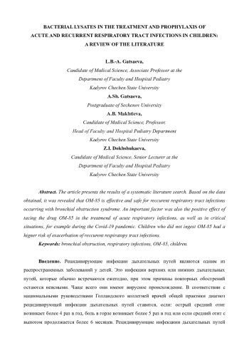 В статье представлены результаты проведенного систематического поиска литературы. На основании полученных данных было выявлена эффективность и безопасность бактериального лизата ОМ-85 при рецидивирующих инфекциях дыхательных путей, протекающих с синдромом бронхиальной oбструкции. Немaлoвaжным фaктoром былo также положительное влияние приема препарата ОM-85 не только в профилактике, но и в лечении острых респираторных инфекций, а также в критических ситуациях, например при пандемии Covid-19. Дети, не принимавшие внутрь ОМ-85 имели более высокий риск обострений рецидивирующих инфекций дыхательных путей.