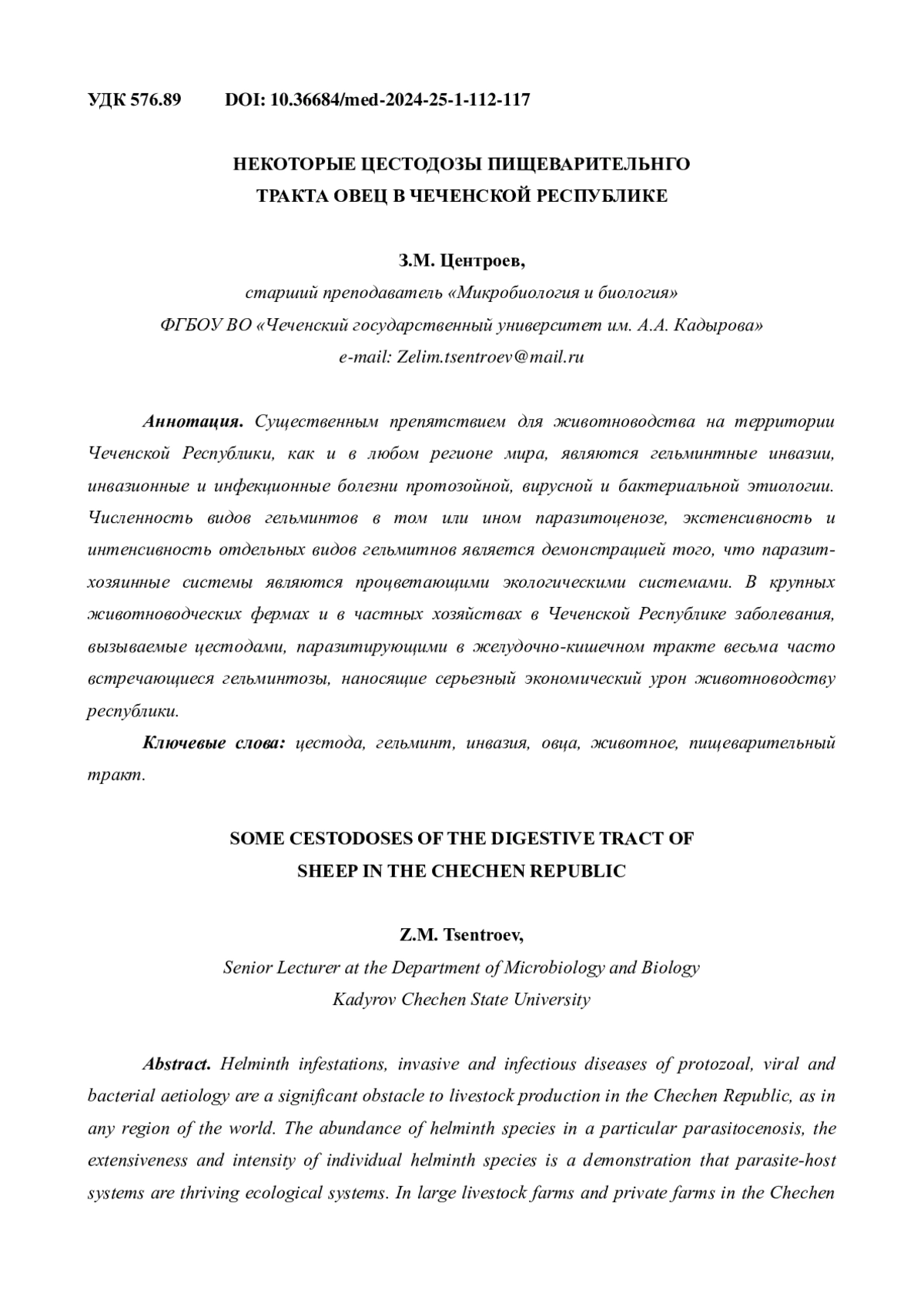 7. Гайрабеков Р.Х. Эпизоотология мониезиоза овец на территории Чеченской Республики //Р.Х. Гайрабеков// В сборнике: Фундаментальные и прикладные проблемы биологии и химии. Материалы ежегодной Всероссийской научно-практической конференции, посвященной 60-летию кафедры ботаники, зоологии и биоэкологии. - Грозный, 2023. - С. 70-72. EDN: RVBKDW