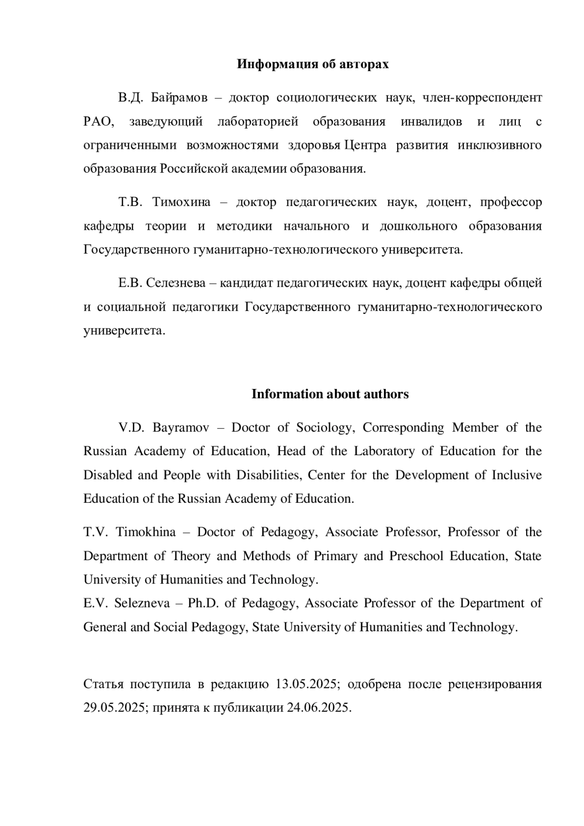 Авторы проводят анализ влияния здоровья студентов на образовательный процесс, рассматривают системы педагогических средств для сохранения здоровья, методы работы с детьми с ОВЗ и механизмы развития инклюзивных компетенций.
