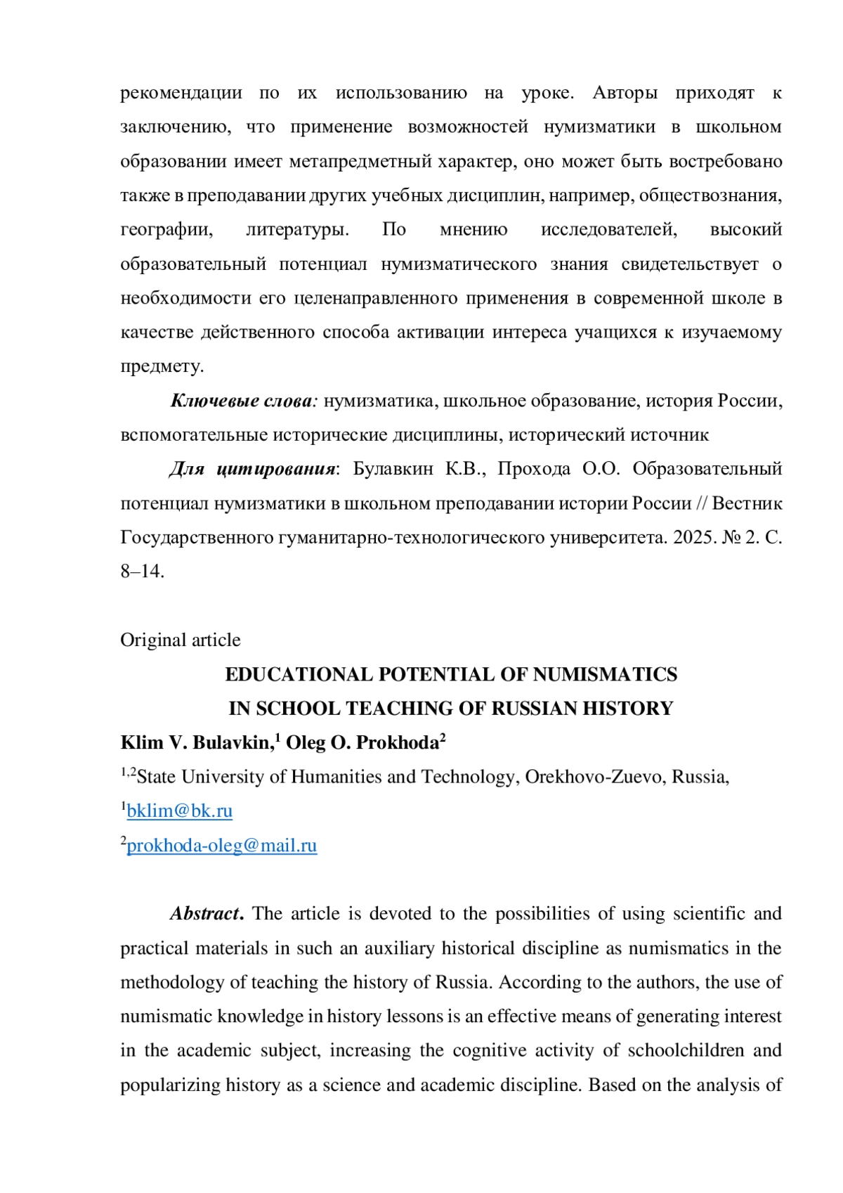 По мнению авторов, применение нумизматических знаний на уроках истории является эффективным средством формирования интереса к учебному предмету, повышения познавательной активности школьников и популяризации истории как науки и учебной дисциплины. На основе анализа существующей методической литературы делается вывод о недостаточной разработанности данной темы в современной педагогической науке.