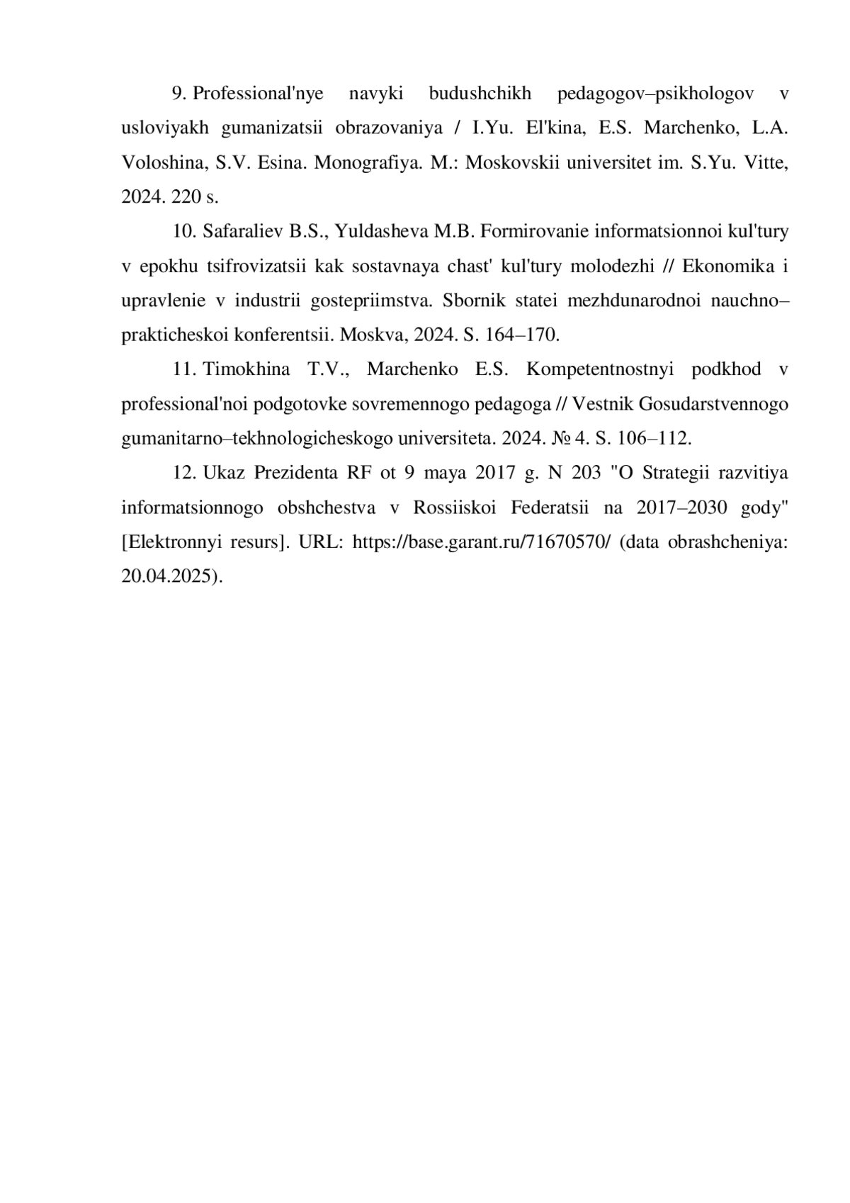 12. Указ Президента РФ от 9 мая 2017 г. N 203 “О Стратегии развития информационного общества в Российской Федерации на 2017-2030 годы” [Электронный ресурс]. URL: https://base.garant.ru/71670570/(датаобращения:20.04.2025).