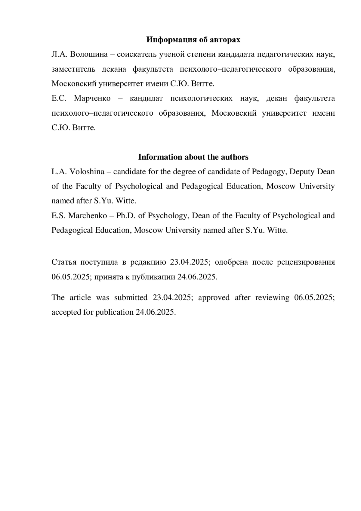 9. Профессиональные навыки будущих педагогов-психологов в условиях гуманизации образования: монография / И.Ю. Елькина, Е.С. Марченко, Л.А. Волошина, С.В. Есина. М.: Московский университет им. С.Ю. Витте, 2024. 220 с. EDN: DBBXAA