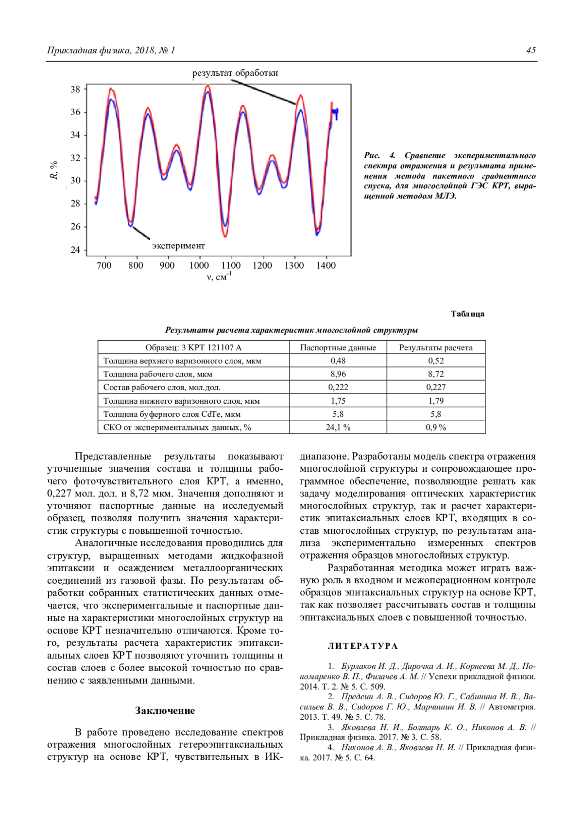 Никонов А. В., Яковлева Н. И. Исследование спектров отражения многослойных гетероэпитаксиальных структур на осно-ве КРТ 42