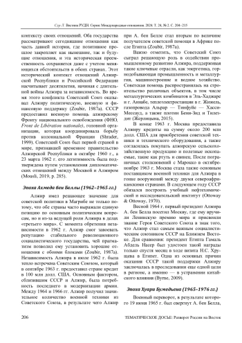 4. Byrne J. J. Our Own Special Brand of Socialism: Algeria and the Contest of Modernities in the 1960s // Diplomatic History. 2009. Vol. 33, no. 3. P. 427-447. DOI: 10.1111/j.1467-7709.2009.00779.x