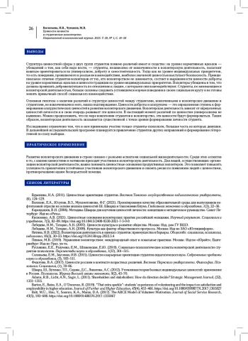 Ключевые фразы: ценности, ВОЛОНТЕРСТВО, виды волонтерства, МОТИВЫ, студенты, динамика ценностей, концепция ценностей ш шварца, индивидуальные приоритеты, нормативные идеалы