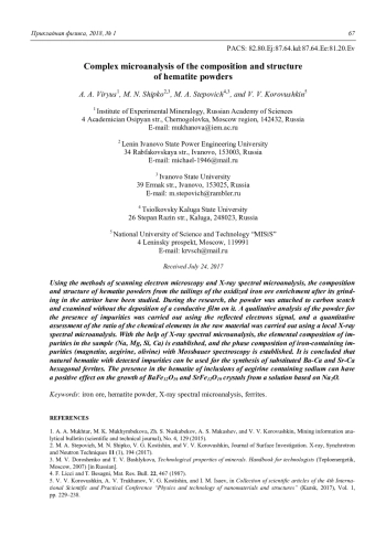 A. A. Viryus, M. N. Shipko, M. A. Stepovich, and V. V. Korovushkin Complex microanalysis of the composition and structure of hematite powders 63