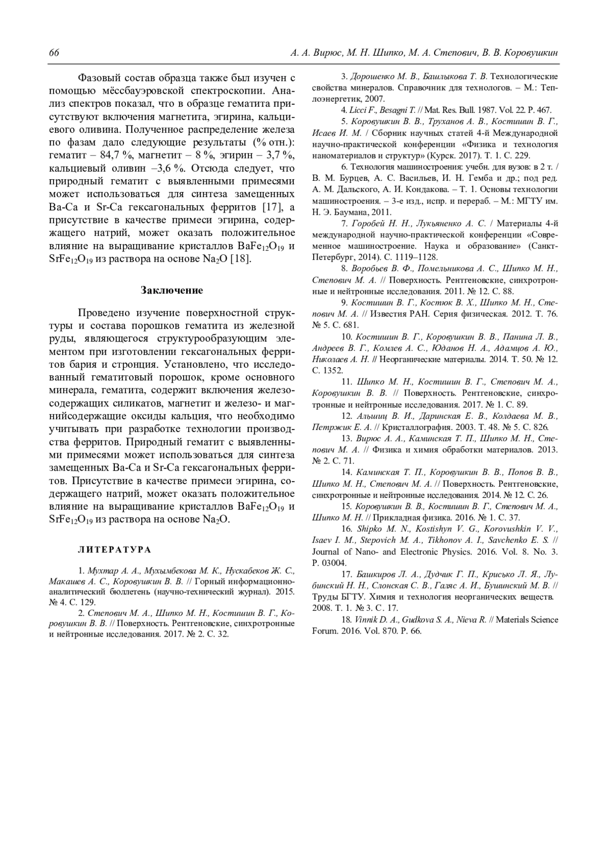 2. Степович М. А., Шипко М. Н., Костишин В. Г., Коровушкин В. В. // Поверхность. Рентгеновские, синхротронные и нейтронные исследования. 2017. № 2. С. 32.