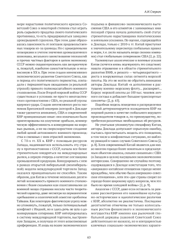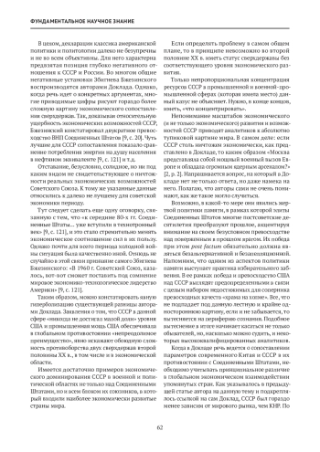 Главный источник настоящей статьи — доклад «The Return of Great Power War: Scenarios of Systemic Conflict Between the United States and China» (далее — Доклад). Характерно, что противостояние США и КНР, рассматриваемое в Докладе, в существенной части анализируется его авторами со ссылками на предыдущий опыт противоборства сверхдержав периода холодной войны. Неслучайно поэтому Советский Союз упоминается в нем более 70 раз. Именно «советский след» в Докладе — тема настоящей статьи. Тематические сюжеты, к которым обратился автор, в основном относятся к четырем смысловым блокам: 1) оценка военных возможностей сторон противостояния; 2) утверждение глобального, а не регионального характера экспансии советского государства; 3) неверные трактовки экономических возможностей Советского Союза, представленные в Докладе; 4) ошибочность попыток моделировать грядущее поведение КНР, основываясь на опыте взаимодействия США с Советским Союзом. Первые два блока были рассмотрены автором в предыдущей статье. Настоящая же работа посвящена анализу третьего и четвертого смысловых блоков Доклада. Внимание автора сосредоточено не только на констатации ошибок в трактовках американских аналитиков, но и объяснении причин, по которым они их допускают.