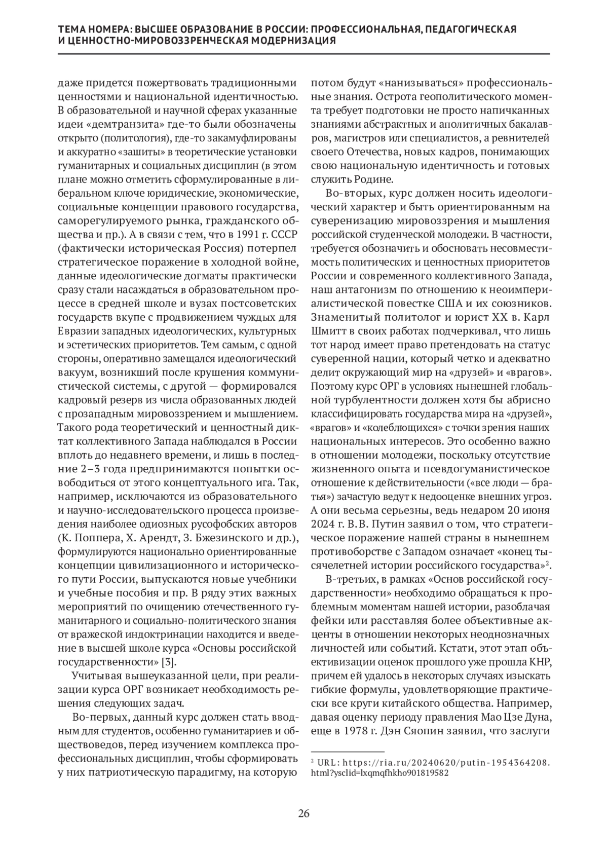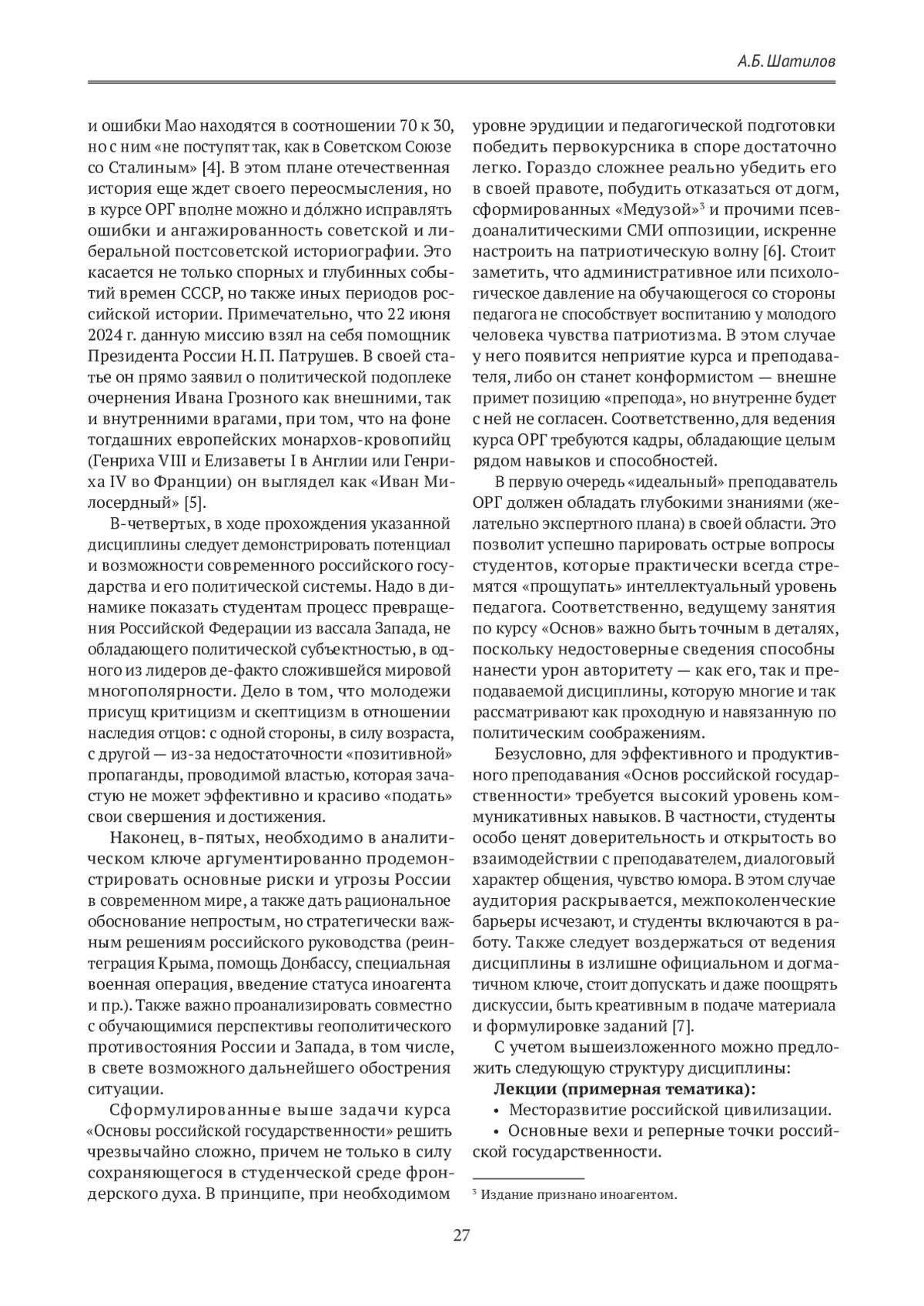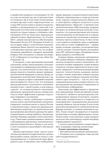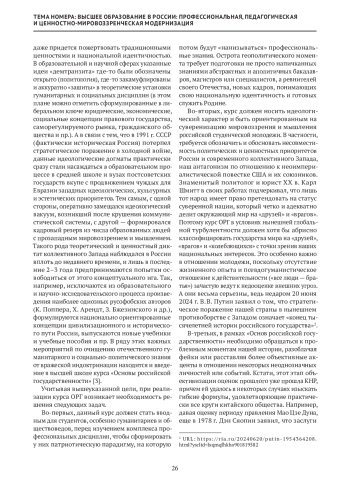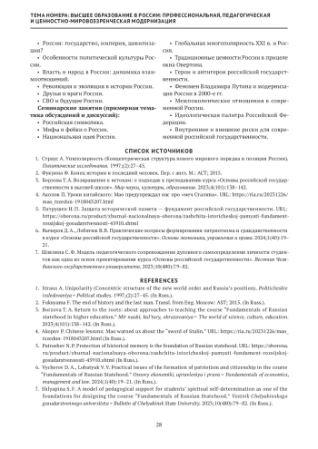 Статья: Курс «Основы российской государственности» как составная часть государственной политики по формированию национальной идентичности и патриотизма у студенческой молодежи Российской Федерации (2024)