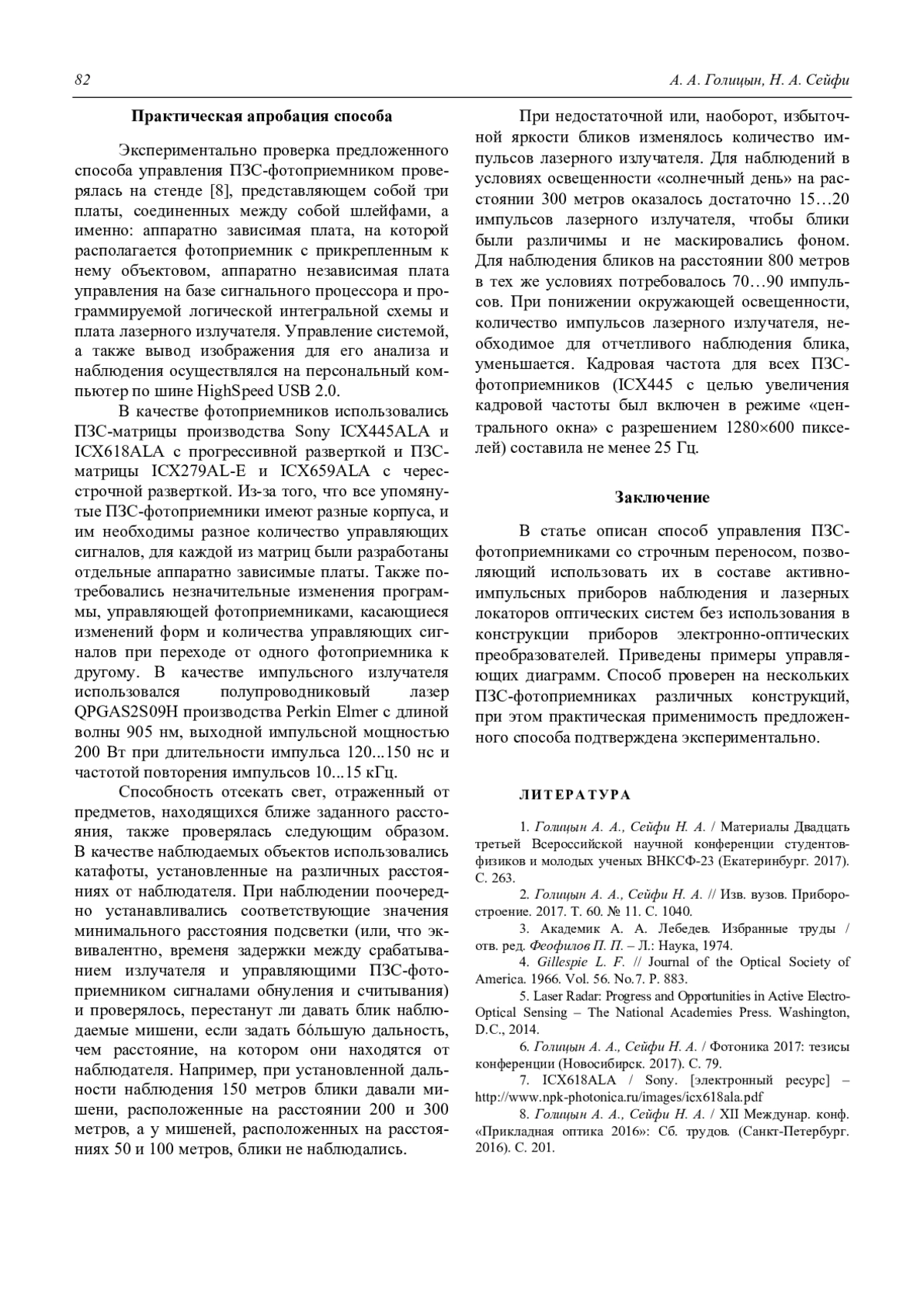 Голицын А. А., Сейфи Н. А. Реализация активно-импульсного режима на ПЗС-матрице 78