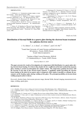 Бакеев И. Ю., Зенин А. А., Климов А. С., Окс Е. М. Распределение тепловых полей при электронно-лучевой обработке кварцевого стекла плазменным источником электронов 5