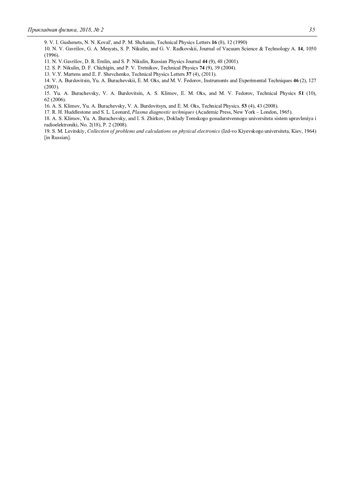 14. Бурдовицин В. А., Бурачевский Ю. А., Окс Е. М., Федоров М. В. // Приборы и техника эксперимента. 2003. № 2. С. 127.