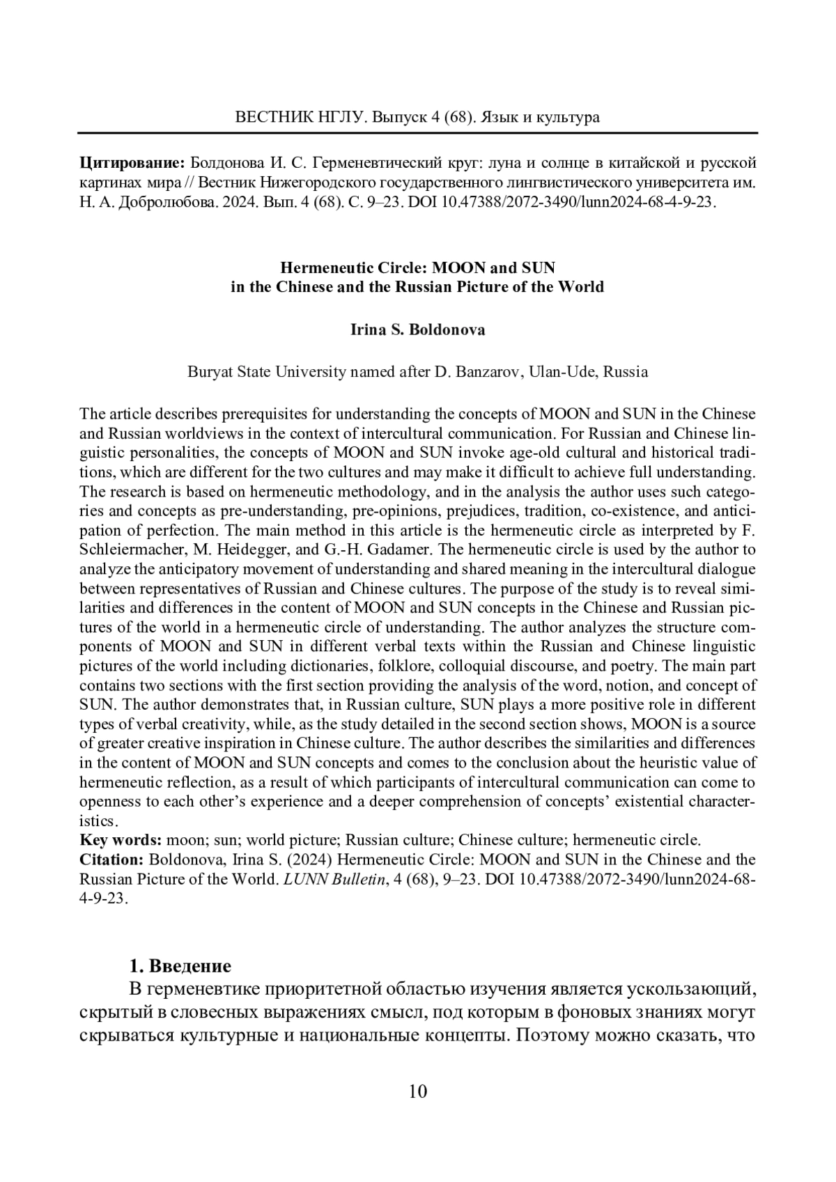 4. Болдонова И. С., Лю Сюэцин. Русские и китайские концепты в межкультурном диалоге: герменевтический подход // Вестник Бурятского государственного университета. Филология. 2024. Вып. 3. С. 25-33.