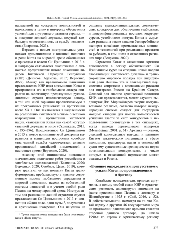 11. Петровский В. Е., Филиппова Л. В. Стратегия Китая по освоению Арктики и перспективы российско-китайского сотрудничества в регионе // Китай в мировой и региональной политике. История и современность. 2018. Т. 23, № 23. С. 171-182. ;. DOI: 10.24411/2618-6888-2018-10013 EDN: PLLETU