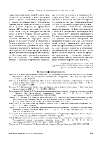 10. Петровский В. Е., Филиппова Л. В. Россия и Китай в Арктике. Москва: Весь мир, 2022. EDN: RNWAZL