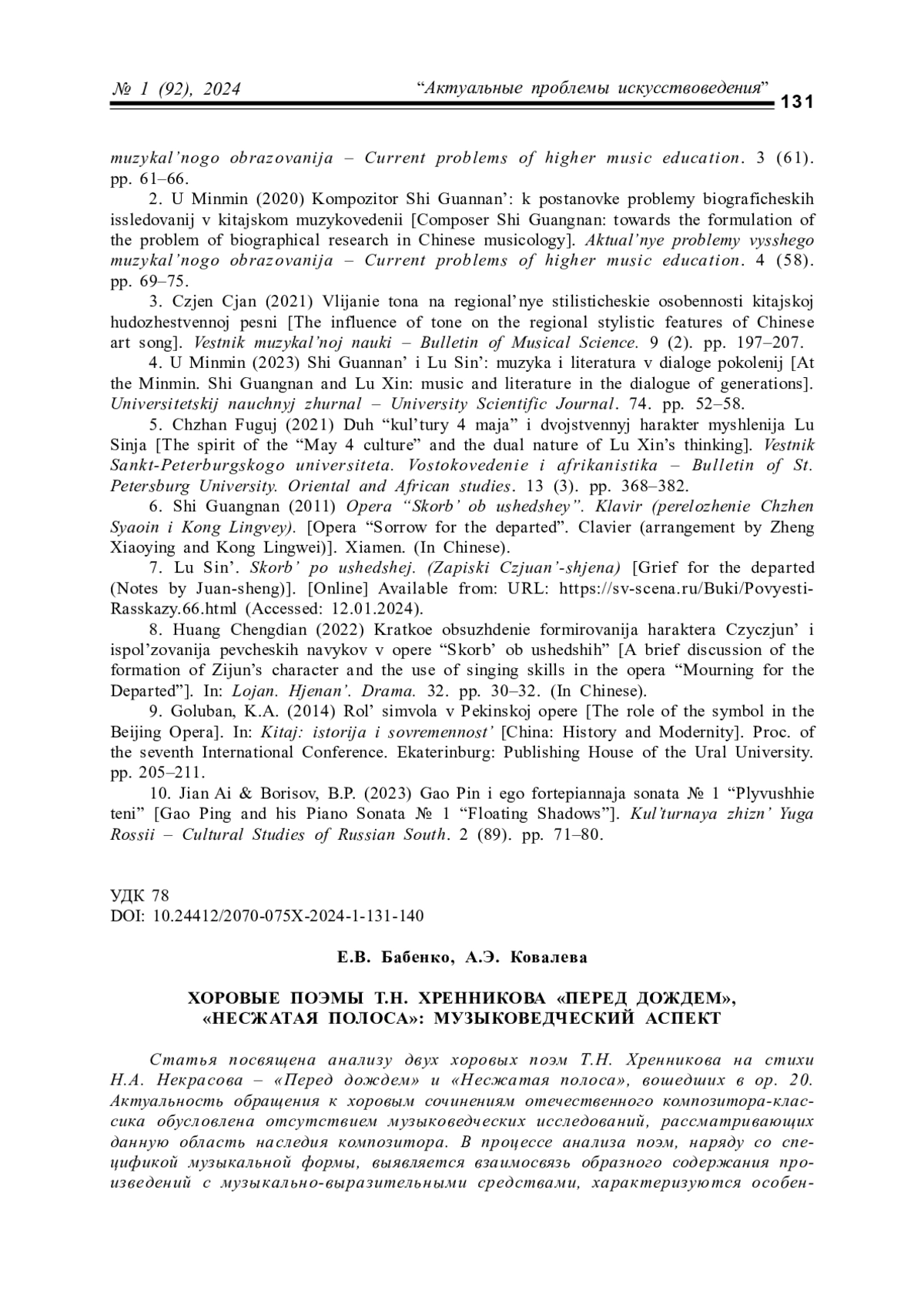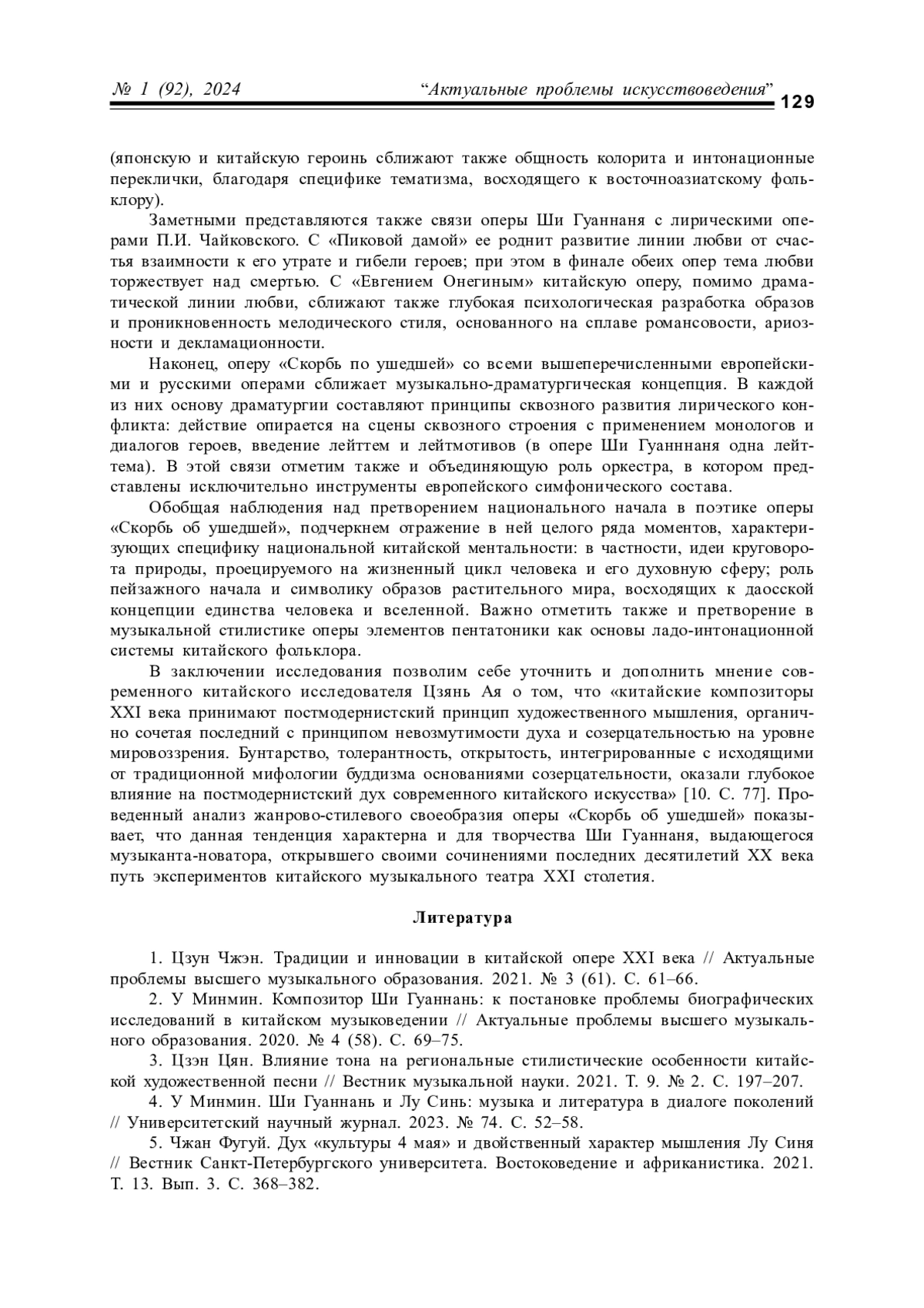 Статья: "СКОРБЬ ОБ УШЕДШЕЙ" ШИ ГУАННАНЯ: ХУДОЖЕСТВЕННАЯ КОНЦЕПЦИЯ ОПЕРЫ В КОНТЕКСТЕ НАЦИОНАЛЬНЫХ И ЕВРОПЕЙСКИХ КУЛЬТУРНЫХ ТРАДИЦИЙ (2024)