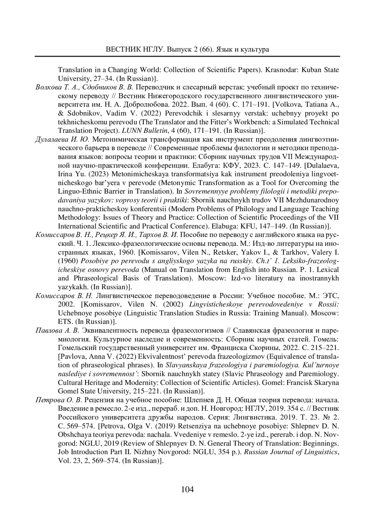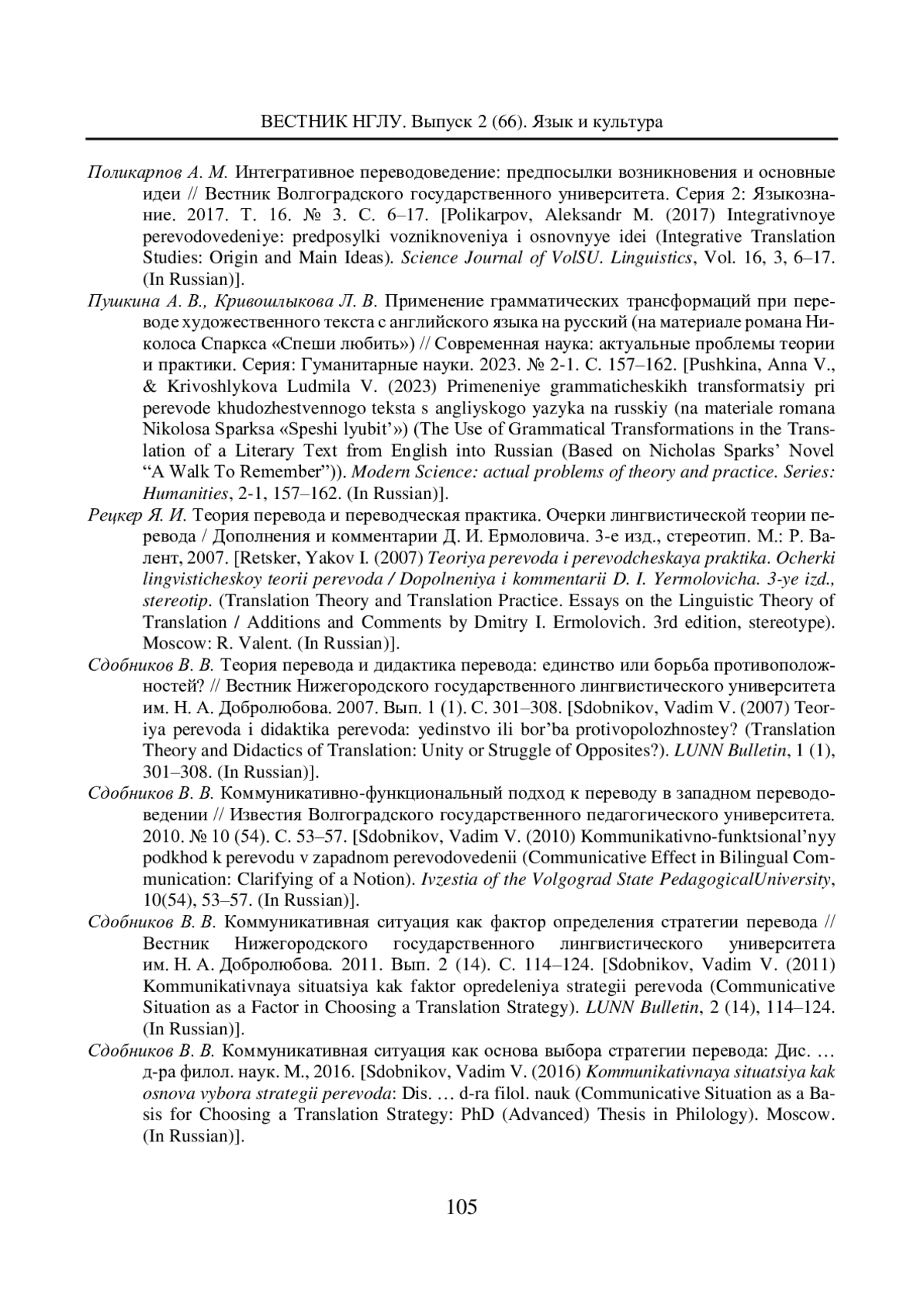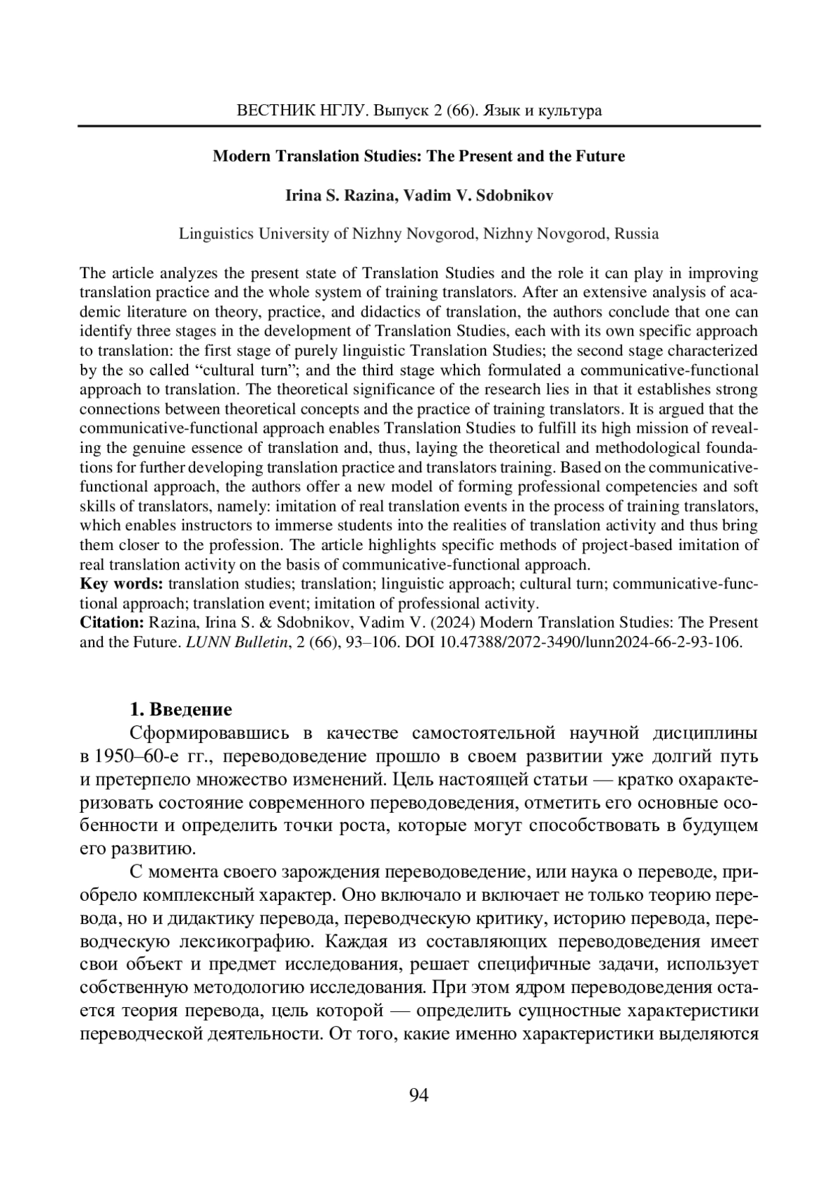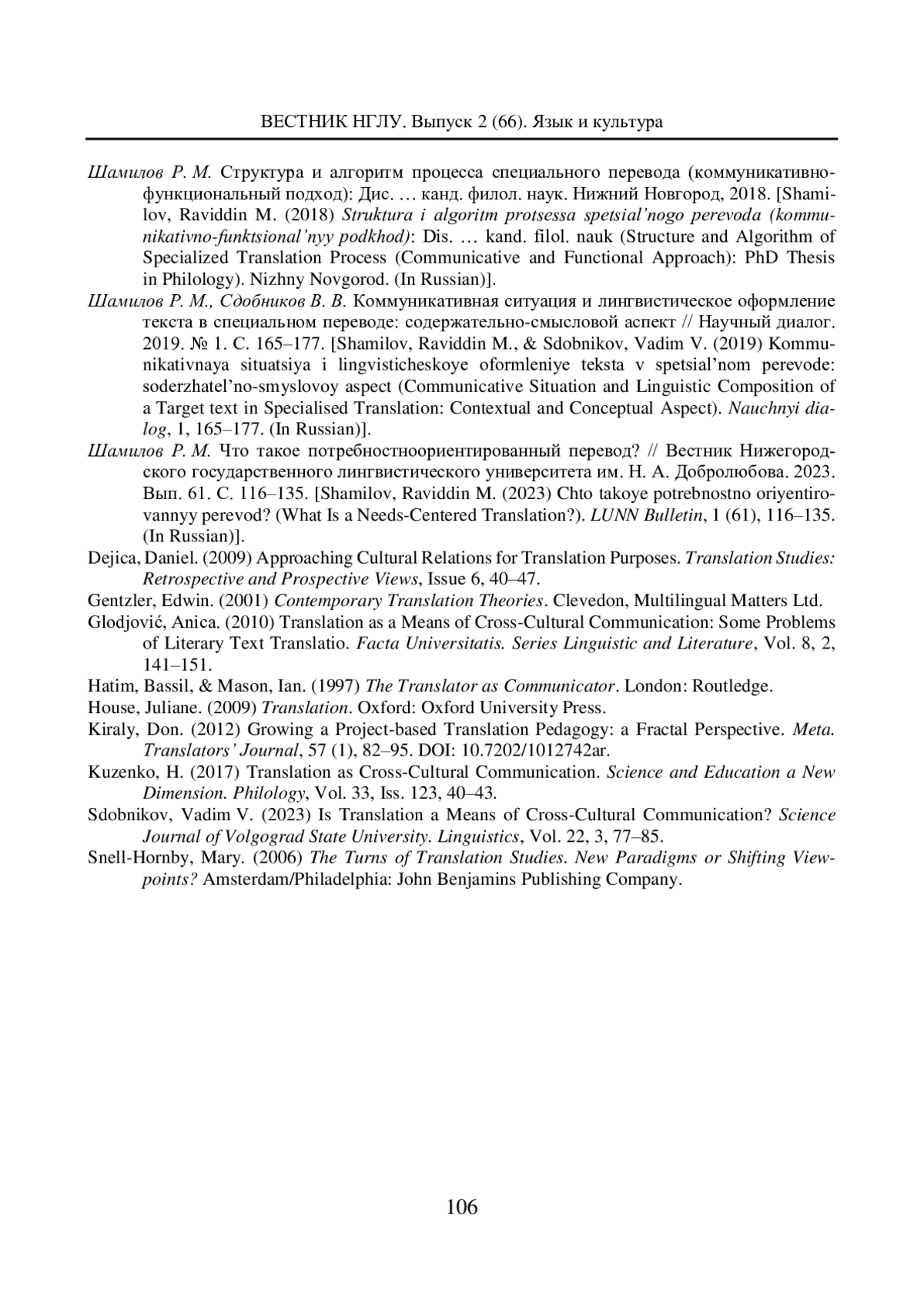 29. Sdobnikov, Vadim V. (2023) Is Translation a Means of Cross-Cultural Communication? Science Journal of Volgograd State University. Linguistics, Vol. 22, 3, 77-85. EDN: YSXFEK