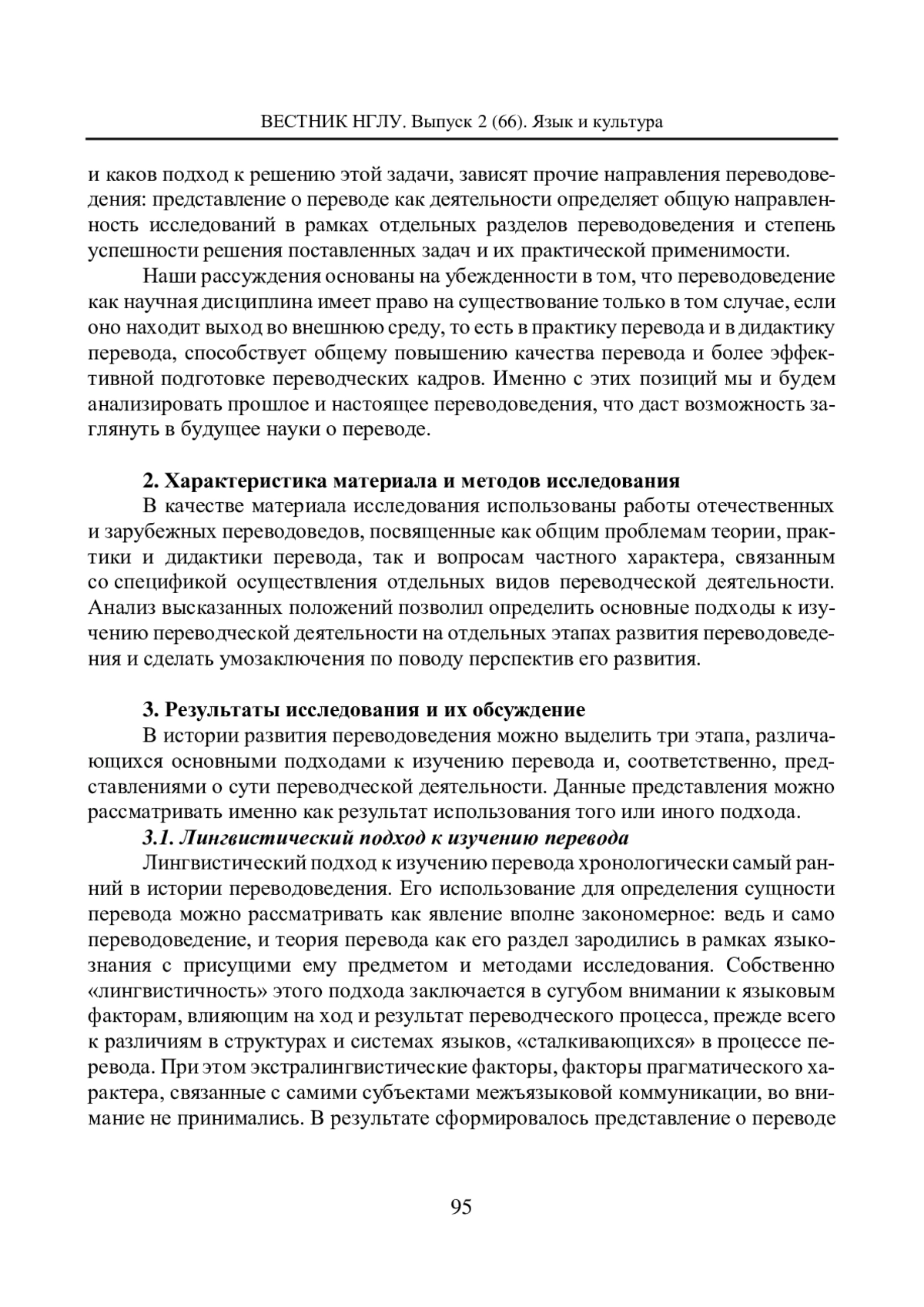 Сформировавшись в качестве самостоятельной научной дисциплины в 1950–60-е гг., переводоведение прошло в своем развитии уже долгий путь и претерпело множество изменений. Цель настоящей статьи — кратко охарактеризовать состояние современного переводоведения, отметить его основные особенности и определить точки роста, которые могут способствовать в будущем его развитию. С момента своего зарождения переводоведение, или наука о переводе, приобрело комплексный характер. Оно включало и включает не только теорию перевода, но и дидактику перевода, переводческую критику, историю перевода, переводческую лексикографию. Каждая из составляющих переводоведения имеет свои объект и предмет исследования, решает специфичные задачи, использует собственную методологию исследования. При этом ядром переводоведения остается теория перевода, цель которой — определить сущностные характеристики переводческой деятельности.