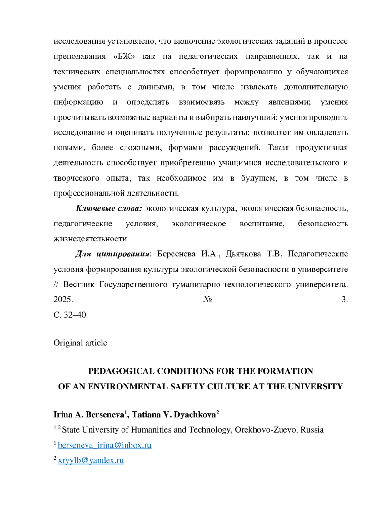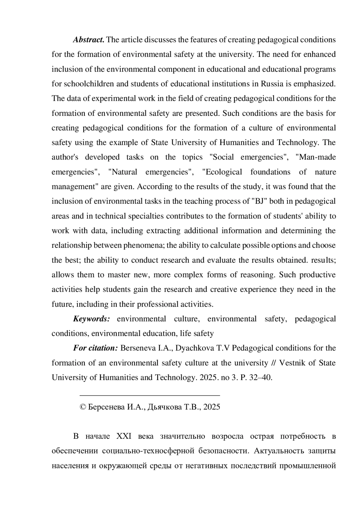 4. Дьячкова Т.В., Берсенева И.А. Формирование культуры безопасности при изучении предмета “Основы безопасности и защита Родины” (ОБЗР) // Актуальные вопросы современной науки и образования. Пенза: Наука и Просвещение (ИП Гуляев Г.Ю.), 2025. С. 113-122. EDN: FRHIGD