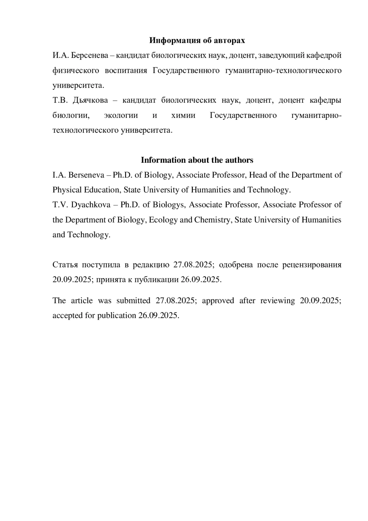 3. Дьячкова Т.В., Берсенева И.А., Киселева. В.А. Безопасность жизнедеятельности: учебное пособие. Орехово-Зуево: Государственный гуманитарно-технологический университет, 2025. 146 с.