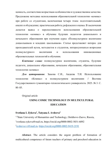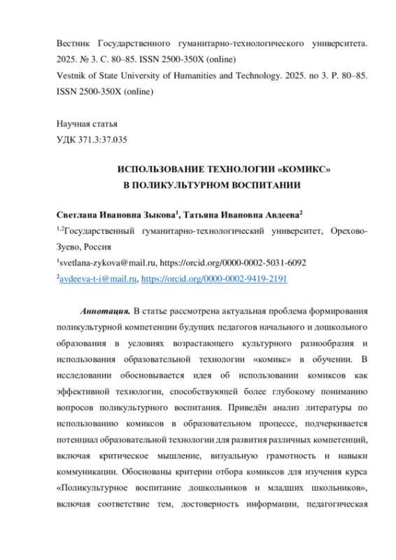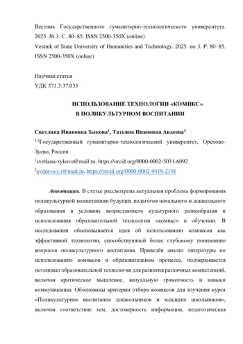 1. Авдеева Т.И. Использование образовательной технологии комикс в обучении студентов // Вестник Государственного гуманитарно-технологического университета. 2024. № 4. С. 8-14. EDN: BYCKRZ