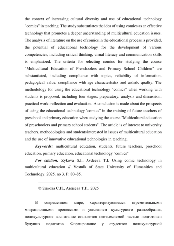 В исследовании обосновывается идея об использовании комиксов как эффективной технологии, способствующей более глубокому пониманию вопросов поликультурного воспитания.