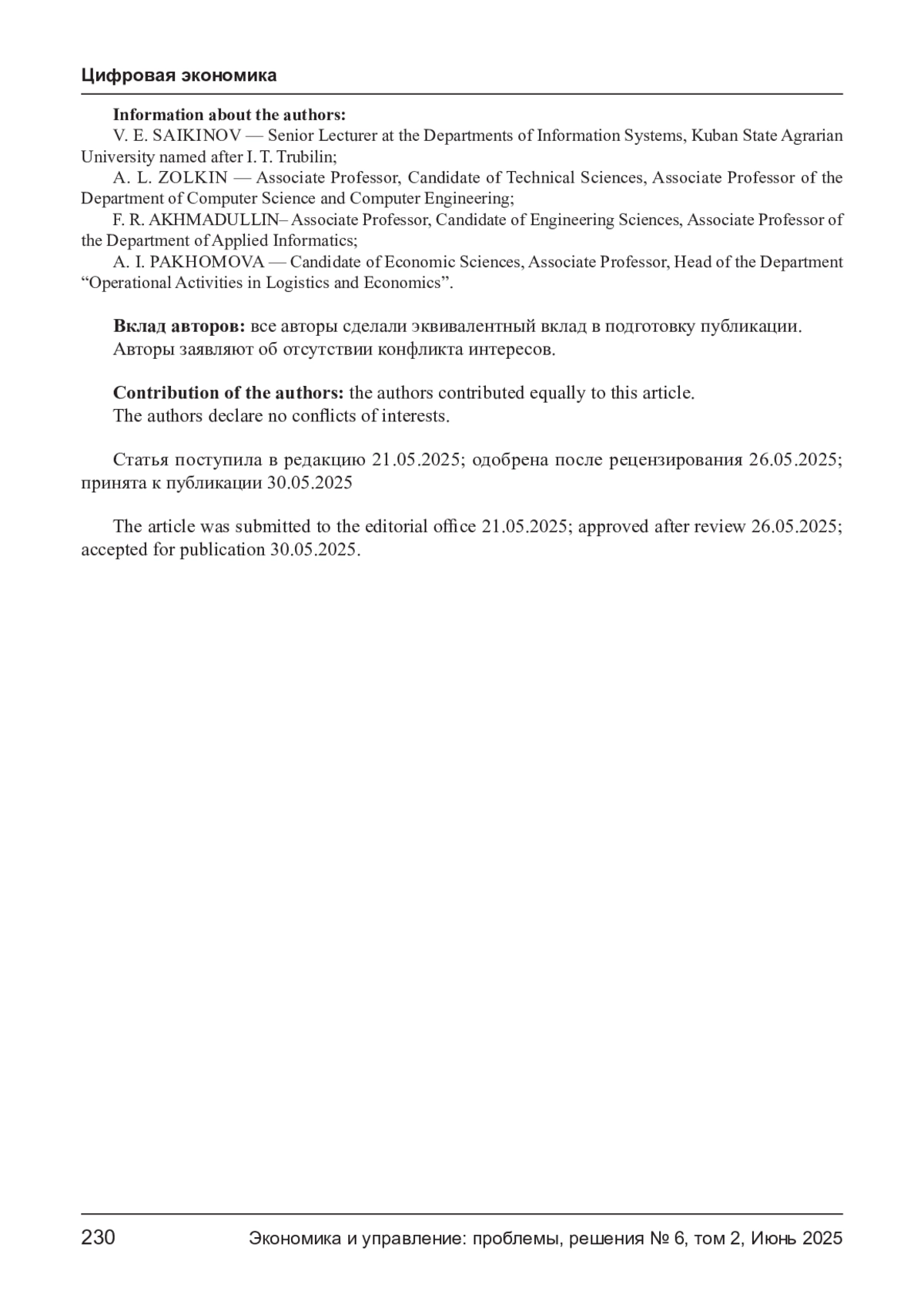 Агропромышленный комплекс России в последние годы переживает масштабную трансформацию, обусловленную внедрением цифровых технологий и инновационных методов ведения сельского хозяйства. Цифровизация выступает ключевым фактором повышения производительности, устойчивости и конкурентоспособности отрасли в условиях глобальных экономических вызовов и экологических изменений. В статье рассматриваются основные направления цифровизации АПК, включая точное земледелие, применение агродронов, технологии интернета вещей (IoT), роботизацию, использование больших данных и искусственного интеллекта. Анализируются экономические эффекты внедрения цифровых решений, включая снижение издержек, увеличение урожайности, улучшение качества продукции и оптимизацию логистики. Особое внимание уделяется барьерам и рискам цифровой трансформации, таким как высокая стоимость оборудования, дефицит квалифицированных кадров и цифровое неравенство регионов. Рассматривается роль государственной политики и образовательных инициатив в развитии цифрового сельского хозяйства в России. Представлены примеры успешных проектов и кейсов из различных регионов. Сделан вывод о необходимости комплексного системного подхода для эффективного развития цифрового агросектора как стратегического приоритета.