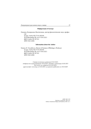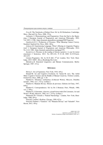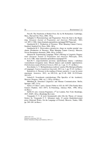 20. Kuzmičova A. Presence in the reading of literary narrative: A case for motor enactment //Semiotica. 2012. No. 189 (1/4). P. 23-48. DOI: 10.1515/semi.2011.071