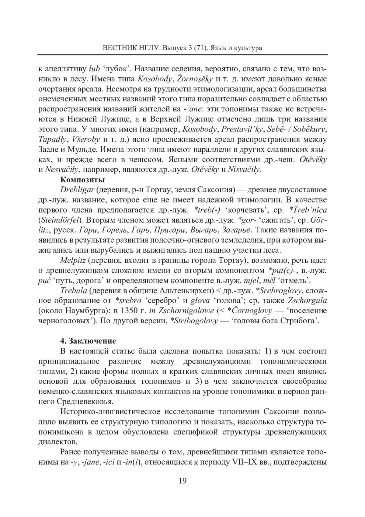 7. Эйхлер Э. Древнелужицкая языковая область по данным топонимики (к вопросу о славянском ономастическом атласе) // Вопросы языкознания. 1962. № 6. С. 80-91.