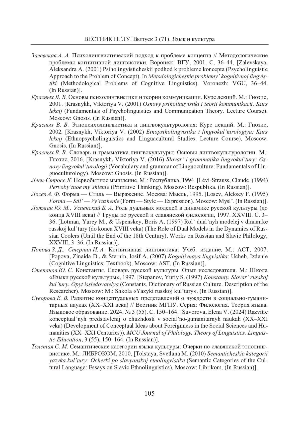 13. Суворова Е. В. Развитие концептуальных представлений о чуждости в социально-гуманитарных науках (XX-XXI века) // Вестник МГПУ. Серия: Филология. Теория языка. Языковое образование. 2024. № 3 (55). С. 150-164. EDN: UROWAK