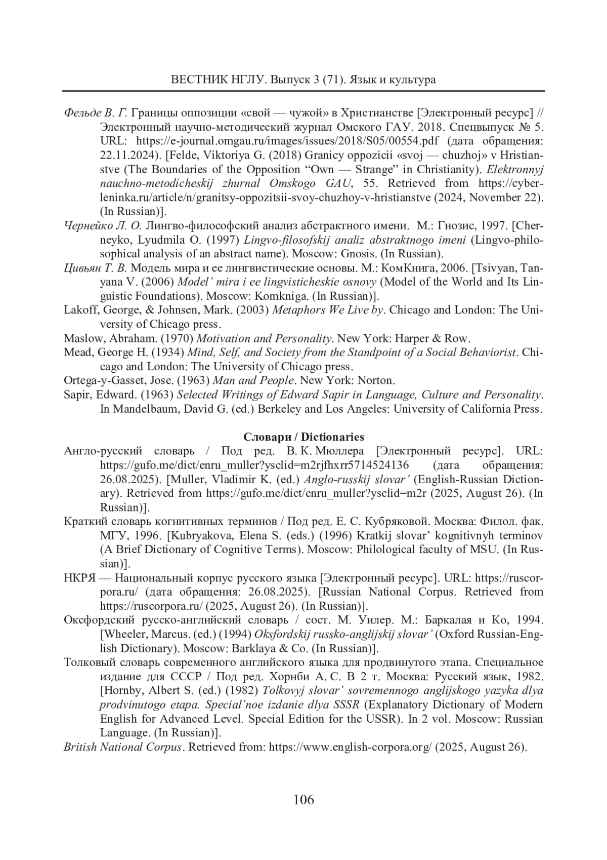 12. Степанов Ю. С. Константы. Словарь русской культуры. Опыт исследователя. М.: Школа “Языки русской культуры”, 1997. EDN: QOFIUL