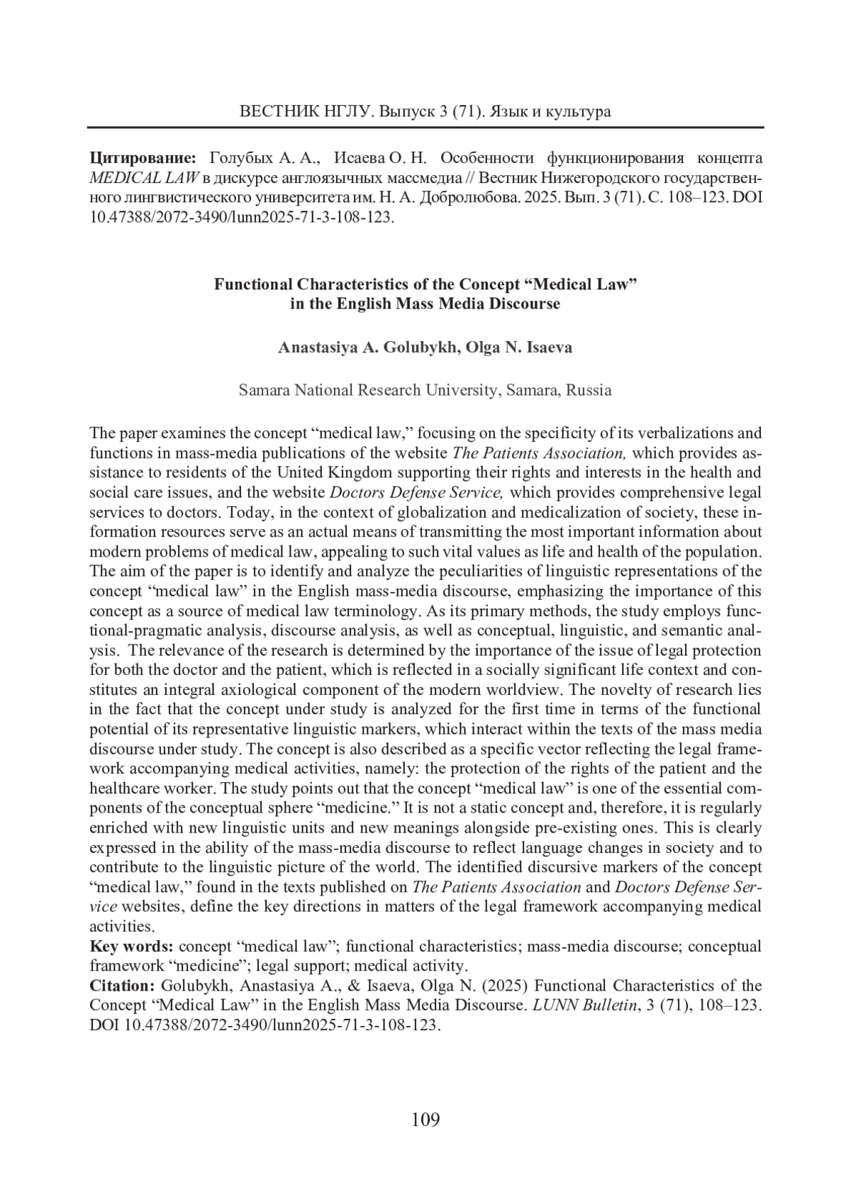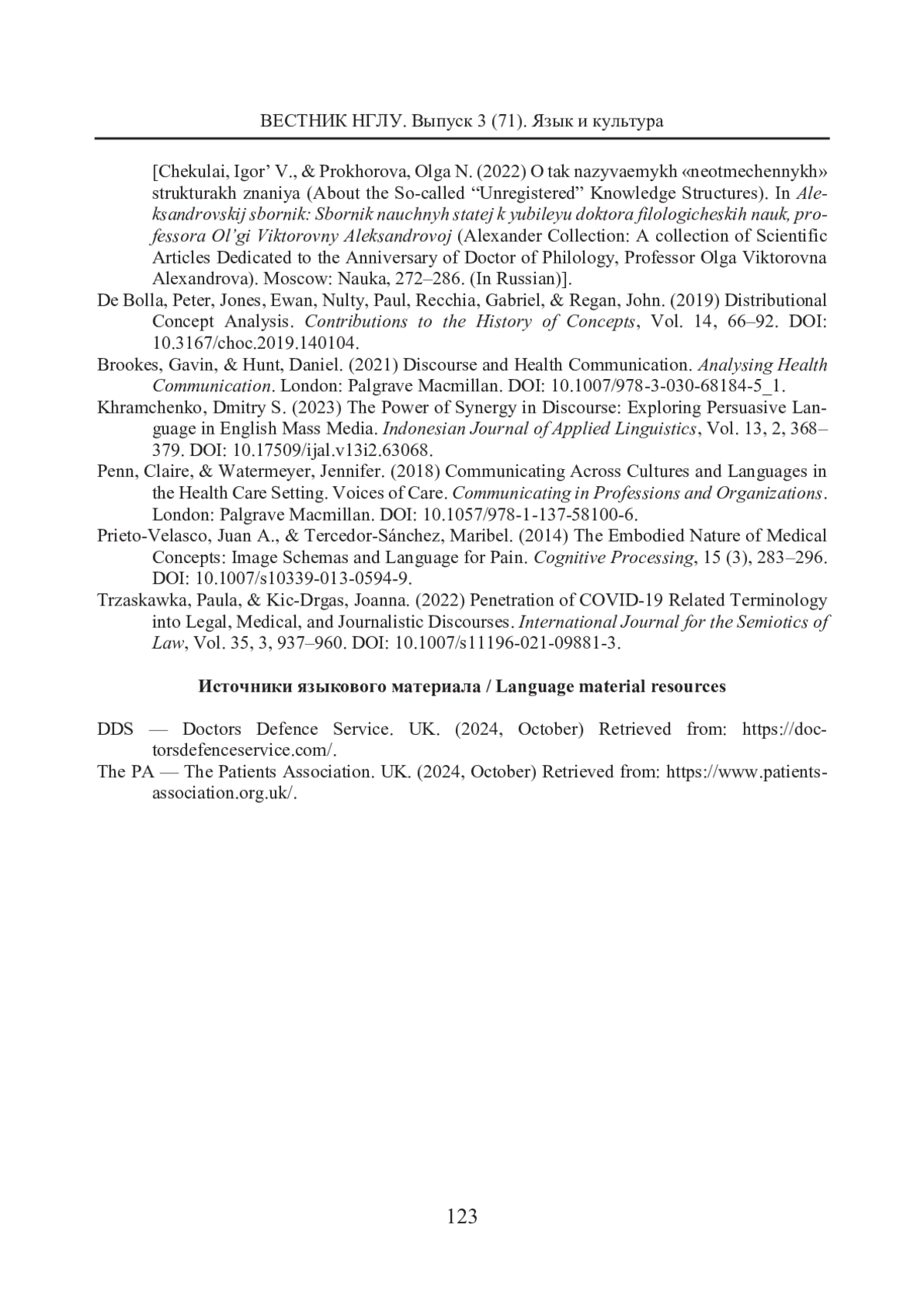 5. Голубых А. А. Концептосфера MEDICINE в современной англоязычной коммуникации. Самара: Издательство Самарского университета, 2023. EDN: WWDNFU