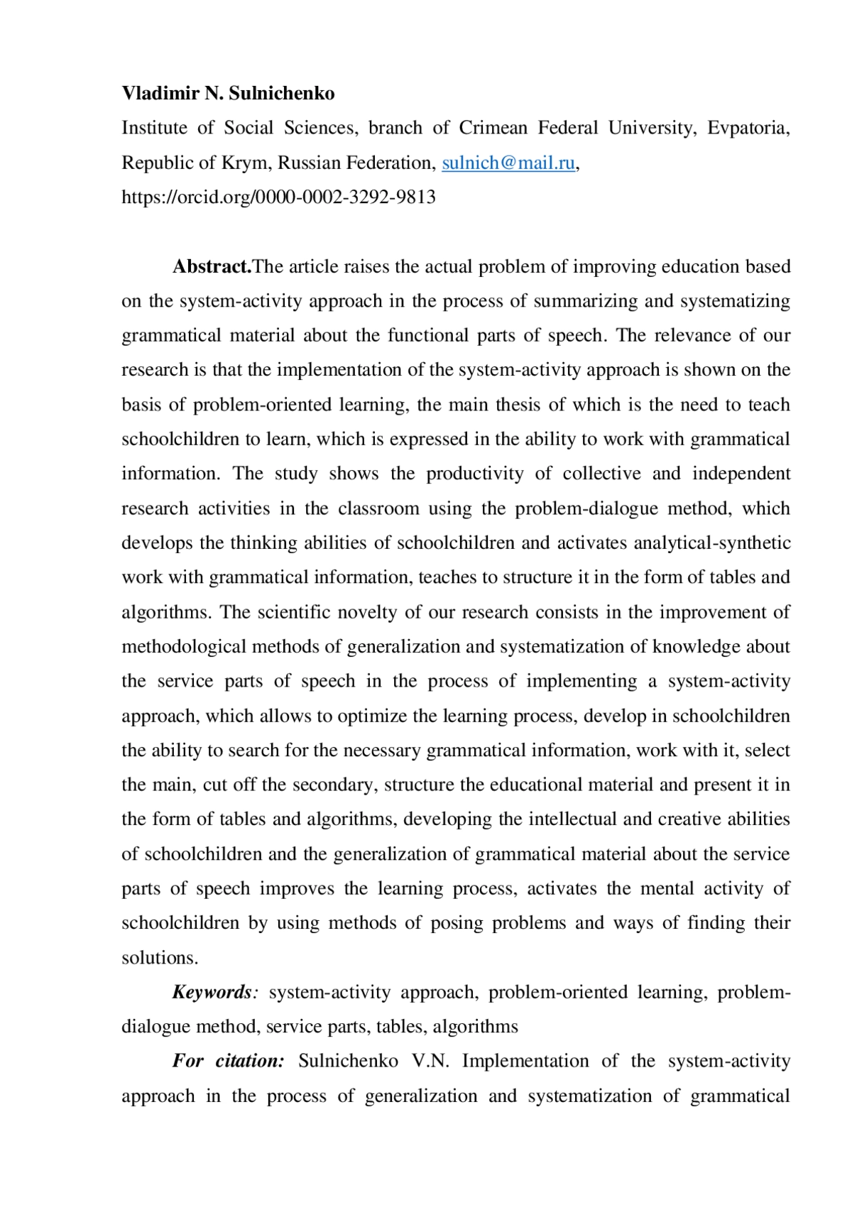 Статья: РЕАЛИЗАЦИЯ СИСТЕМНО-ДЕЯТЕЛЬНОСТНОГО ПОДХОДА В ПРОЦЕССЕ ОБОБЩЕНИЯ И СИСТЕМАТИЗАЦИИ ГРАММАТИЧЕСКОГО МАТЕРИАЛА О СЛУЖЕБНЫХ ЧАСТЯХ РЕЧИ В 7 КЛАССЕ (2025)