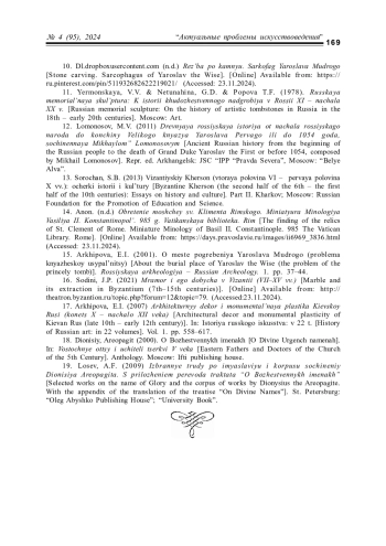 15. Архипова Е.И. О месте погребения Ярослава Мудрого (проблема княжеской усыпальницы) // Российская археология. 2001. № 1. С. 37-44.