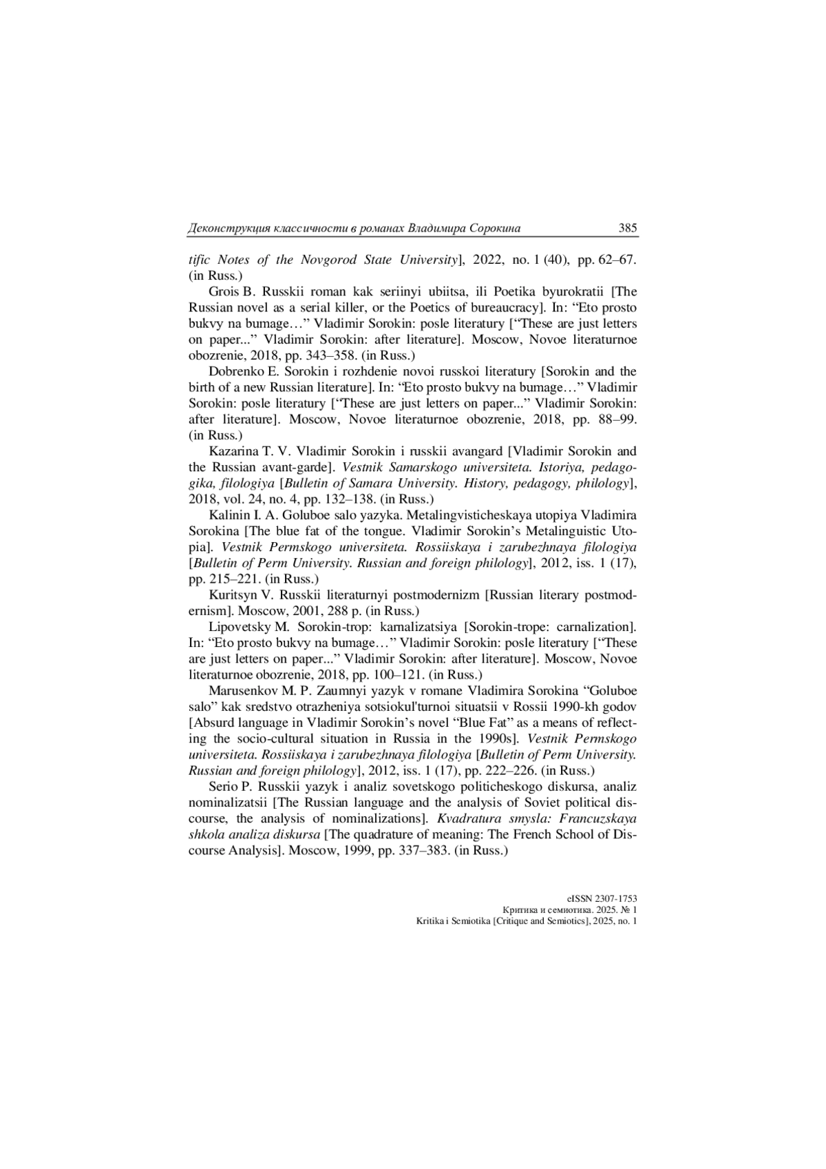 5. Добренко Е. Сорокин и рождение новой русской литературы // “Это просто буквы на бумаге…” Владимир Сорокин: после литературы. М.: НЛО, 2018. С. 88-99.