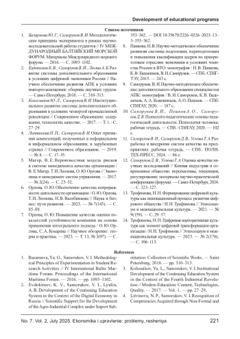 9. Саморуков, В. И. Научно- методическое обеспечение дополнительного образования специалистов АПК: монография / В. И. Саморуков, К. В. Евдокимов, А. А. Кожевников, А. О. Пешков. - СПб: СПбГАУ, 2020. - 187 с. EDN: YMANIX